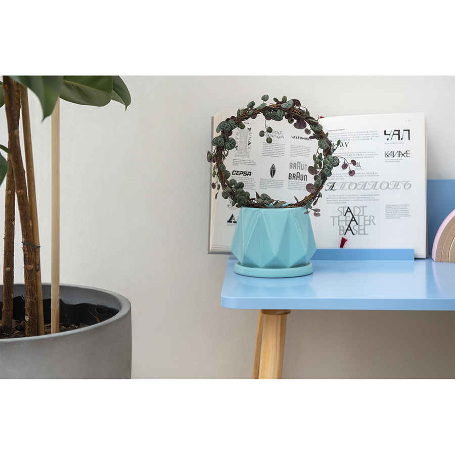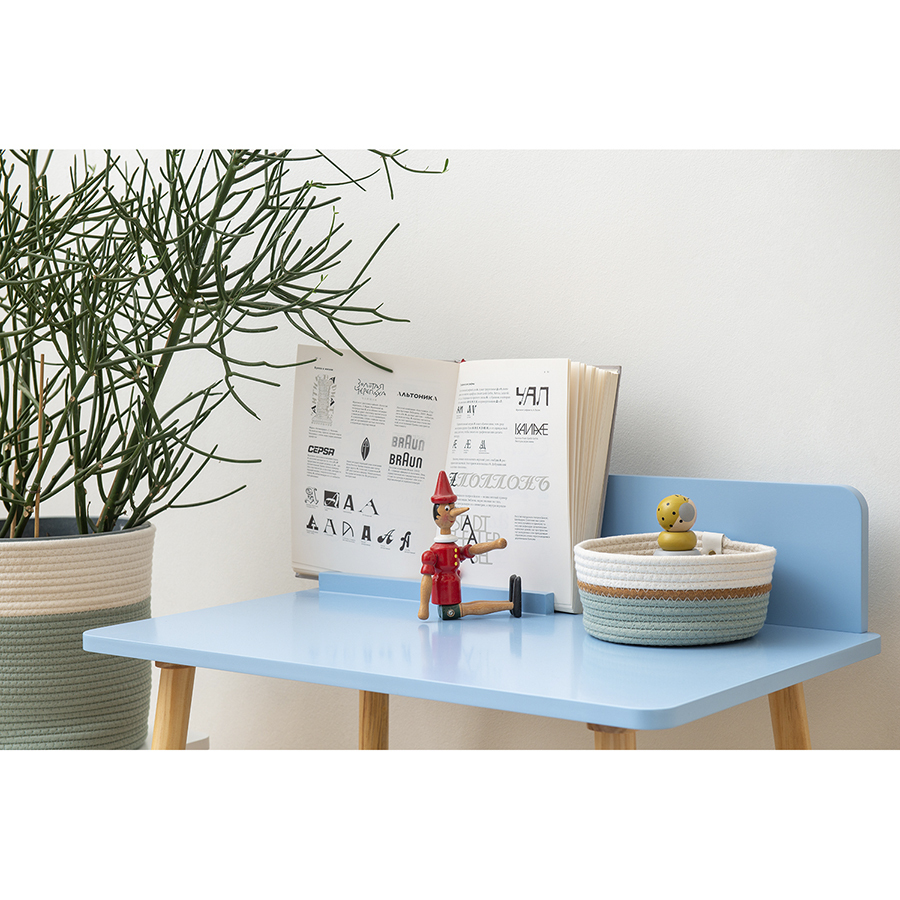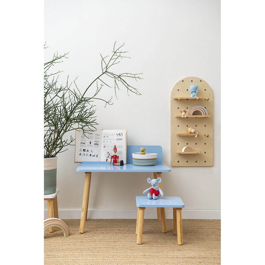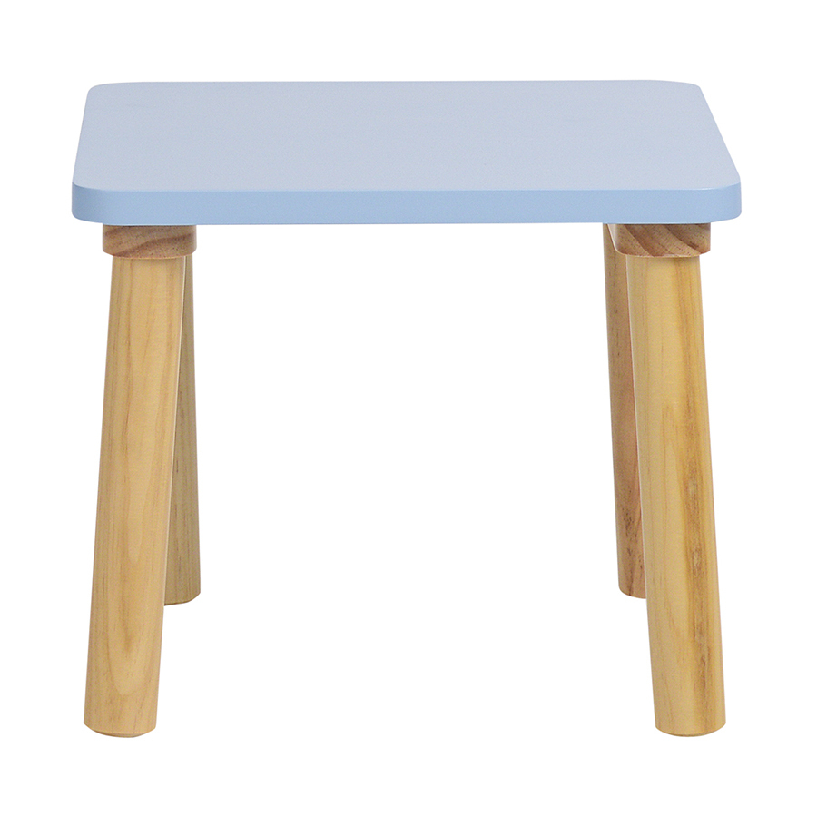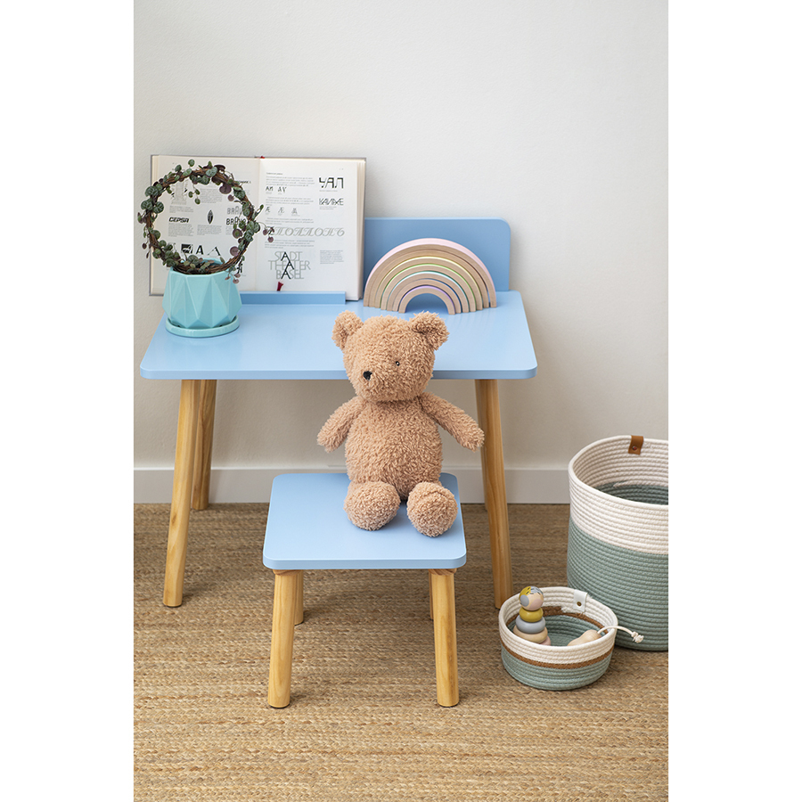 Материалы: древесина сосны, МДФ. Размеры: стол – 75х50х67 см, стул – 35х35х29 см. Высота столешницы: 50 см. Цвет: голубой.