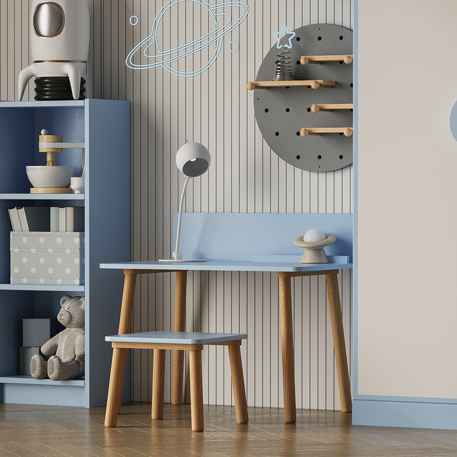 Столик с табуретом Grete помогут организовать удобное место для творчества и перекуса, не заняв при этом много места в детской комнате. Мебель в спокойных тонах прекрасно сочетается с отделкой и предметами декора любых оттенков. Изделия имеют прочный и надежный каркас из натуральной сосновой древесины. Столешница и сиденье стула выполнены из окрашенной МДФ. За счет практичных материалов такой набор не требует сложного ухода, долго служит.