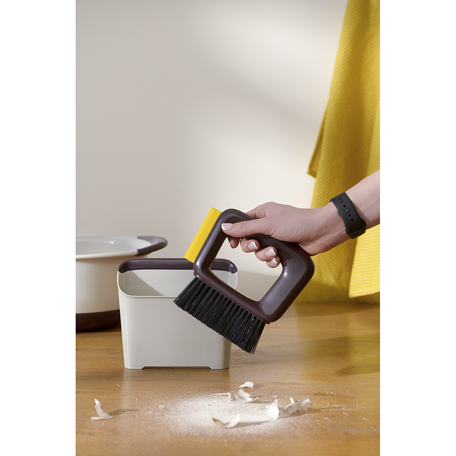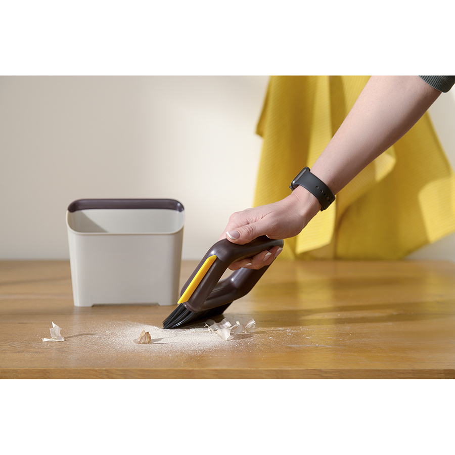 - Специальный контейнер со встроенным совком обеспечивает удобный сбор мусора.