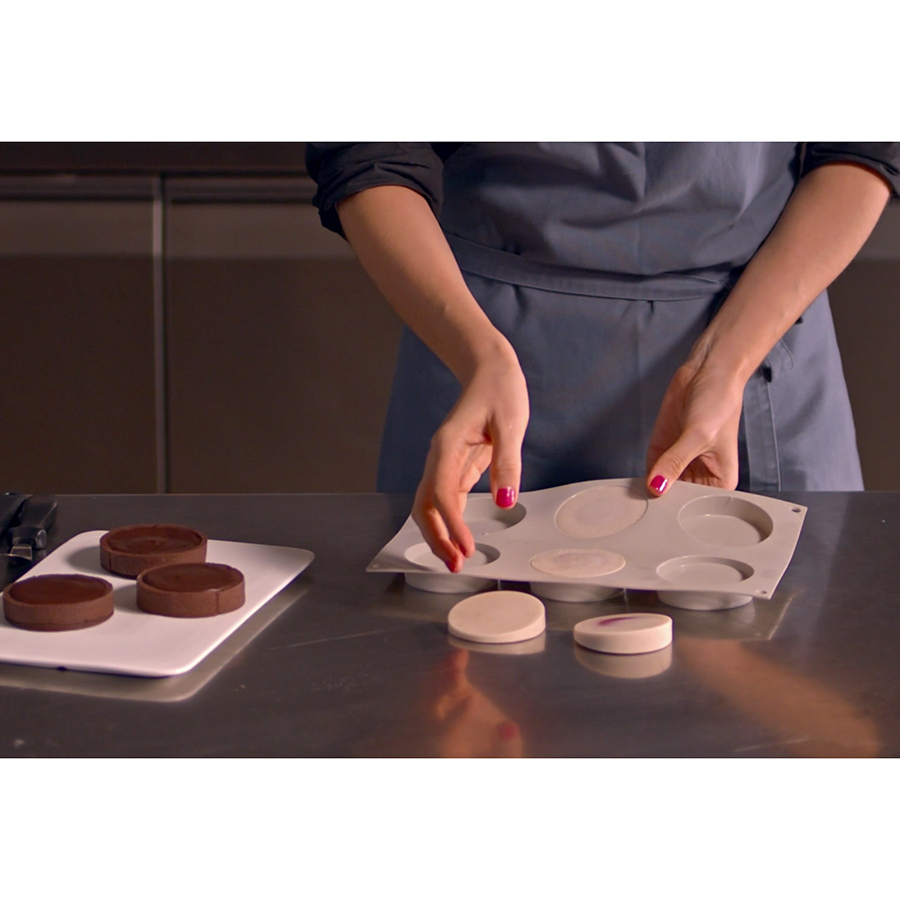 Набор включает 6 перфорированных пластиковых формочек с антипригарным покрытием для песочной основы и силиконовую форму с шестью секциями для украшения. Форма выдерживает температуру от - 60 до + 230 °С. Силикон не содержит вредный бисфенол-А и соответствует европейским стандартам качества. Он не имеет запаха и не дымится во время готовки. Материал гибкий, прочный, устойчивый к перепадам температур. Форма выдерживает до 3000 использований. Перед использованием необходимо смазать изделие маслом.