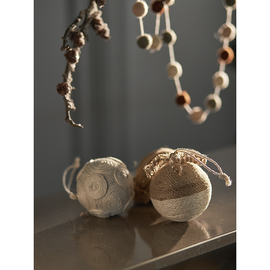 Набор елочных шаров Zero waste из джута из коллекции New Year Essential привнесет в интерьер ностальгические нотки и напомнит о временах, когда новогодние украшения создавались вручную и носили особенный характер.