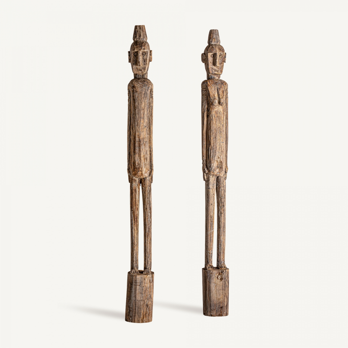 Набор скульптур 2, натуральный состаренный цвет, этнический стиль. Изготовлен из тикового дерева.