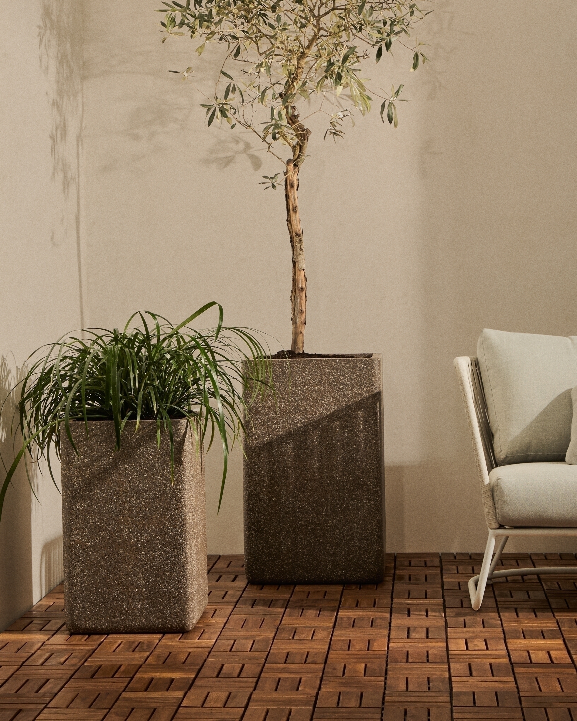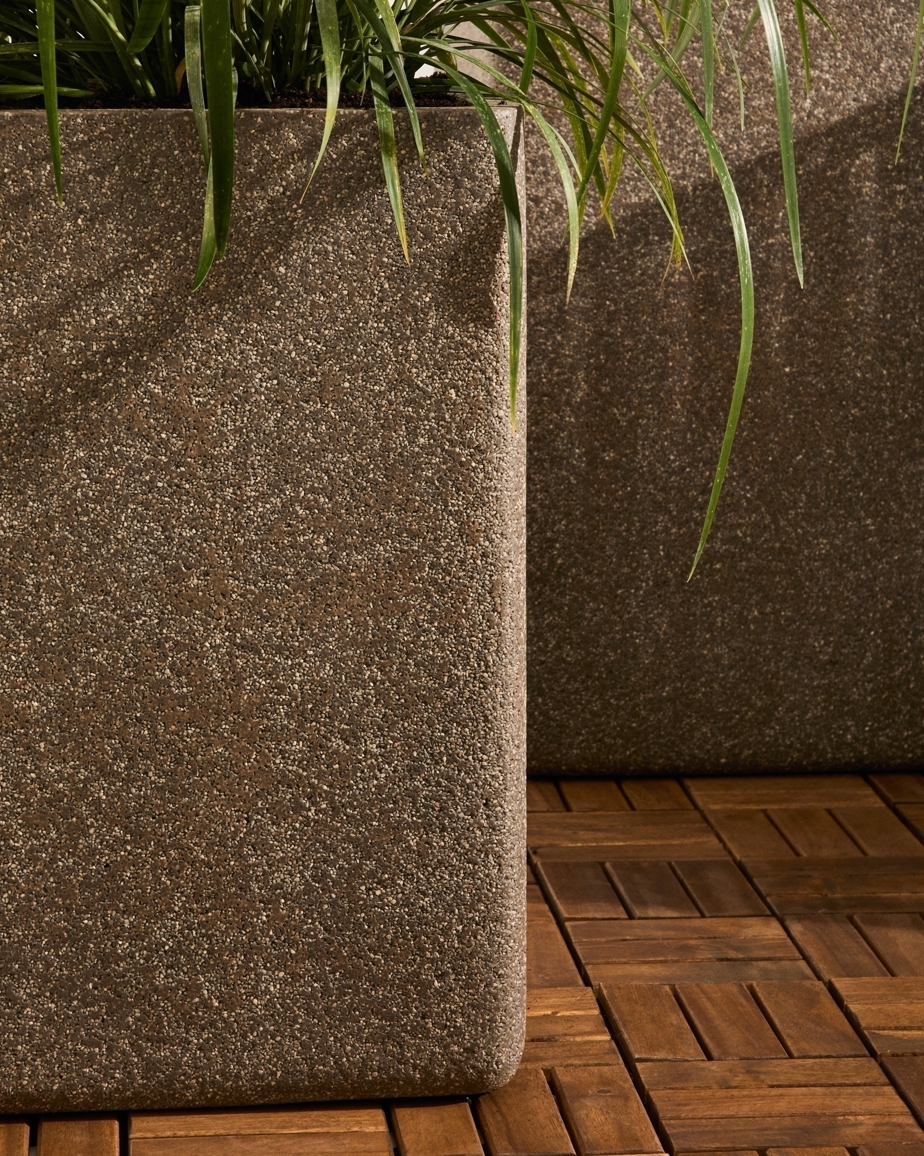 Этот кашпо с простыми линиями и тёмной отделкой в совершенстве сочетает в себе стиль и функциональность. Его кубическая форма и минималистичный дизайн делают его универсальным предметом, который можно использовать как в помещении, так и на улице, добавляя современный и элегантный штрих в любое пространство. Изготовленное из полицемента — материала, состоящего из смолы и каменной пыли, — оно выглядит как камень, но при этом отличается высокой прочностью и лёгкостью, что делает его удобным в использовании и долговечным. Это кашпо, идеально подходящее для подчёркивания естественной красоты ваших растений, превращает любой уголок в изысканное и индивидуальное пространство.