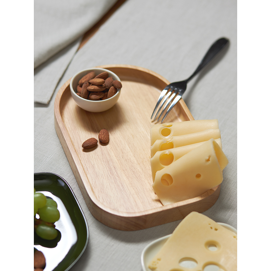 - Деревянный поднос имеет надежную цельную конструкцию с высокими бортиками, что предотвращает скольжение тарелок и продуктов.