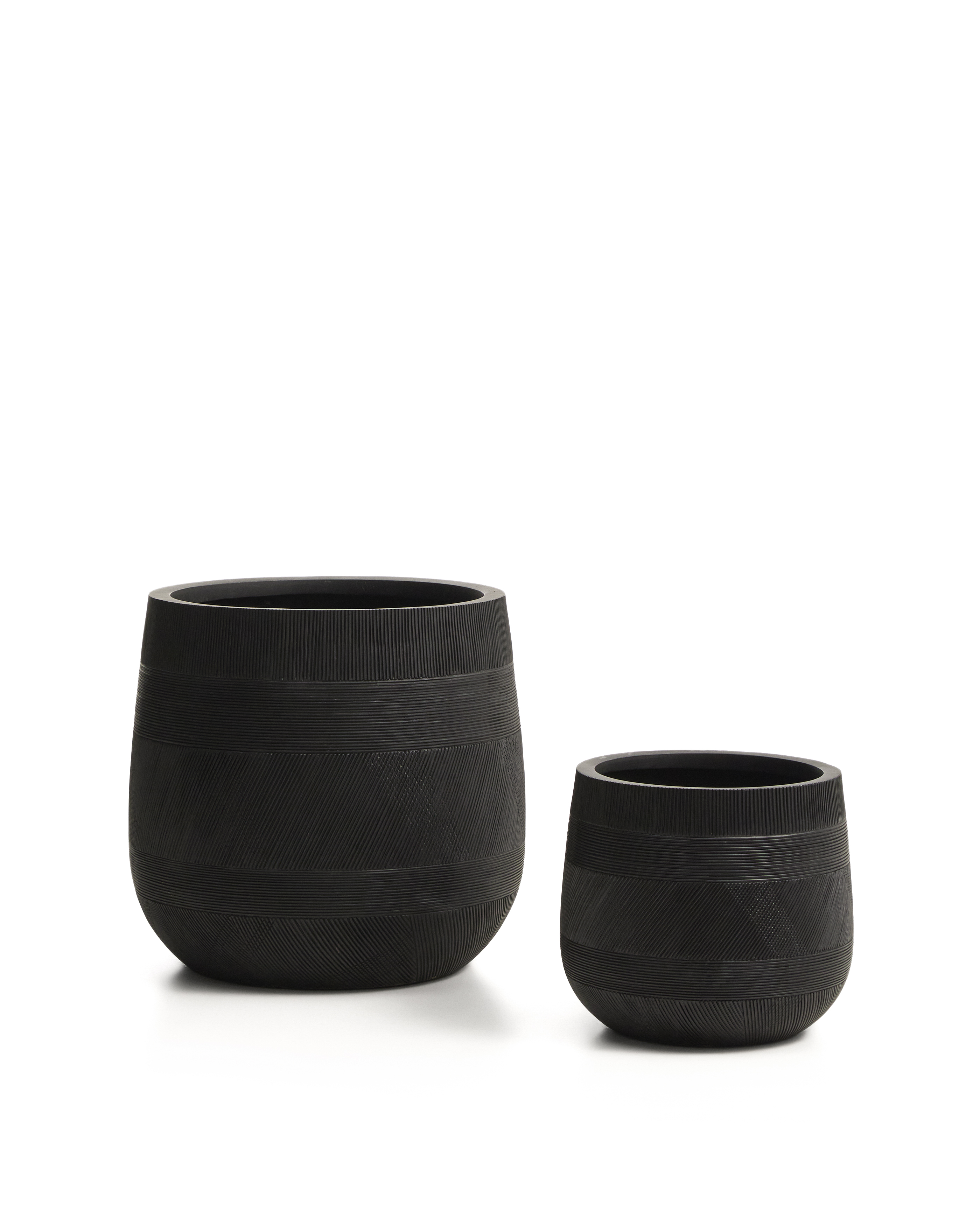 Этот набор кашпо выделяется своим органичным дизайном и округлыми формами, которые привносят тепло и уют в любое пространство. Универсальный стиль делает его идеальным выбором как для помещений, так и для улицы, легко адаптируясь к различным условиям. Изготовленный из полицемента – материала, состоящего из смолы и каменной пыли, – он имитирует внешний вид камня, обладает высокой прочностью и легкостью, что облегчает его использование и гарантирует долговечность. Идеально подходящий для того, чтобы подчеркнуть естественную красоту ваших растений, это декоративный элемент, сочетающий простоту и элегантность, превращающий любой уголок в оазис свежести и современности.