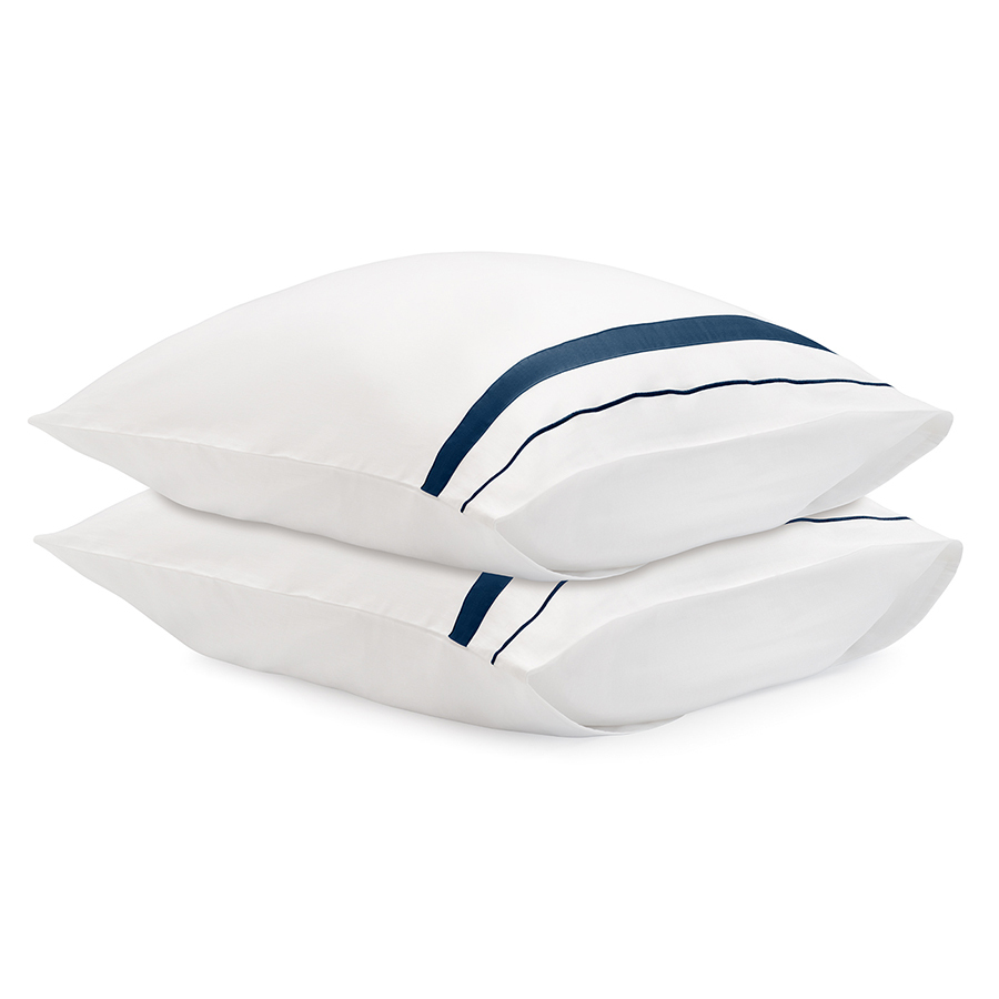 Набор из двух наволочек из сатина белого цвета с темно-синим кантом из коллекции Essential подойдет для любого постельного белья базовых оттенков. Гладкий, приятный на ощупь материал плотностью 210 ТС отличается особым способом плетения – нити переплетаются в скрученном виде, что придает ткани дополнительную прочность. Можно дополнить комплектом постельного белья из этой же серии.