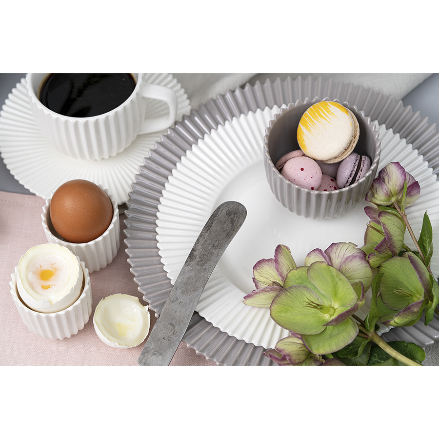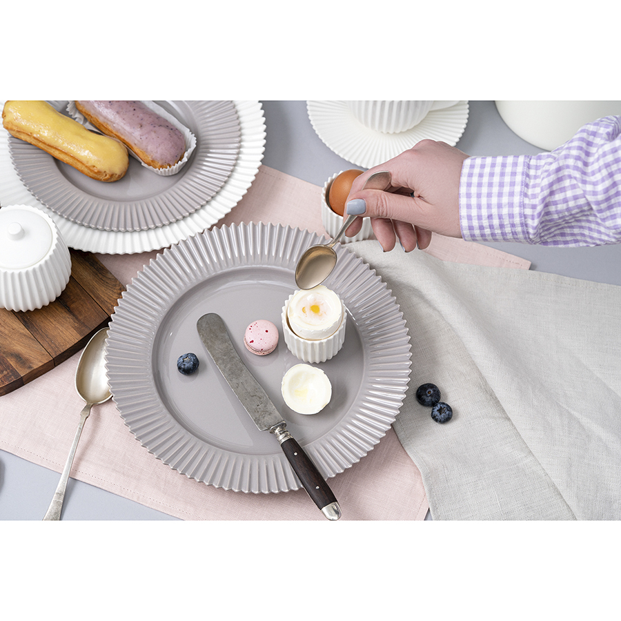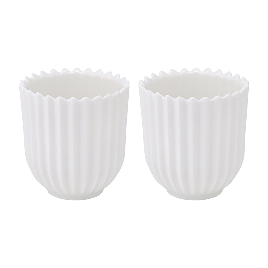 Изящные белые подставки для яиц наверняка понравятся тем, кто считает завтрак самым главным приемом пищи и хочет, чтобы он был безупречным даже в будний день. Подставки изготовлены из фарфора и имеют рифленую поверхность c оригинальным зубчатым краем — это фирменная черта коллекции Edge. В набор входят две подставки, которые при желании можно дополнить чашками и тарелками с таким же дизайном.
