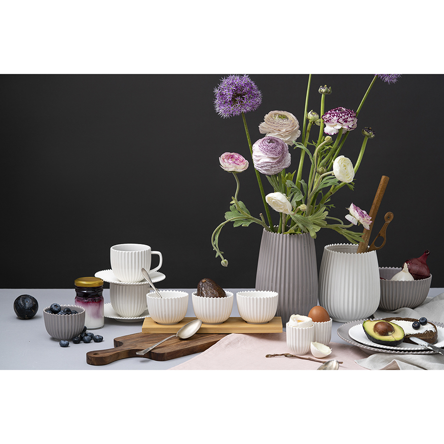 Набор из двух небольших фарфоровых салатников идеально подходит для порционной подачи закусок, десертов, салатов и других блюд. Глянцевая поверхность приятного темно-серого цвета имеет рифленую фактуру и красиво отражает свет, что добавляет сервировке легкости и утонченности. При этом за фарфором, из которого сделана посуда, очень просто ухаживать: он не царапается, не меняет цвет и легко моется. Салатники можно комбинировать с другими предметами из коллекции Edge — например, тарелками, чашками или вазами.