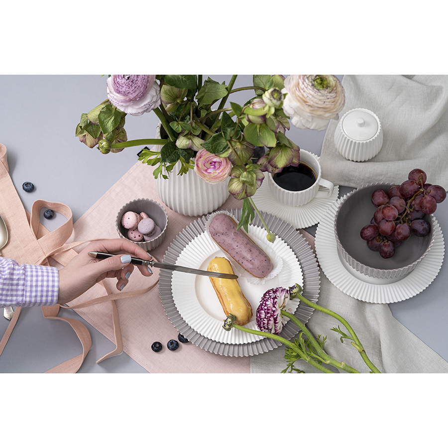 В набор входят два больших фарфоровых салатника красивого темно-серого цвета. В них можно подавать самые разные блюда — закуски, фрукты, десерты и многое другое. Глянцевая поверхность салатников имеет рифленую фактуру и красиво отражает свет, что добавляет сервировке легкости и утонченности. При этом за фарфором, из которого сделана посуда, очень просто ухаживать: он не царапается, не меняет цвет и легко моется. Салатники можно комбинировать с другими предметами из коллекции Edge — например, тарелками, чашками или вазами.