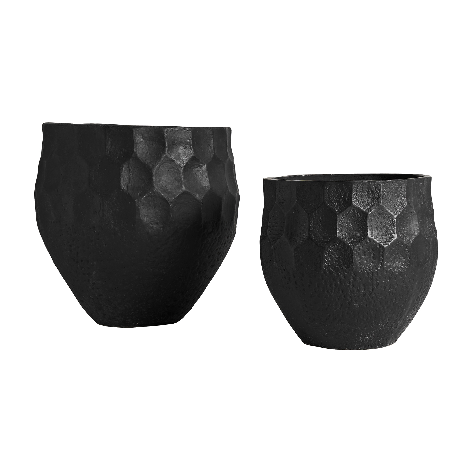 Набор из 2 кашпо, черный цвет, современный стиль. Изготовлен из терракоты.