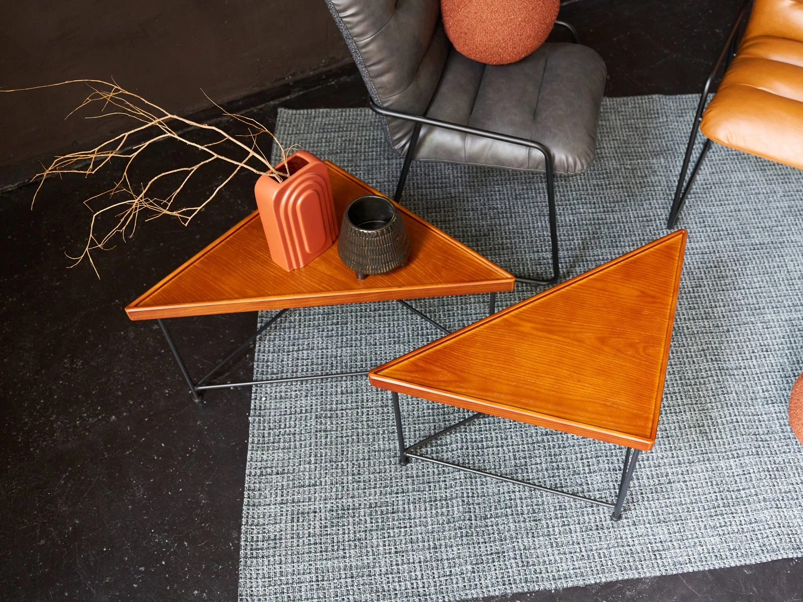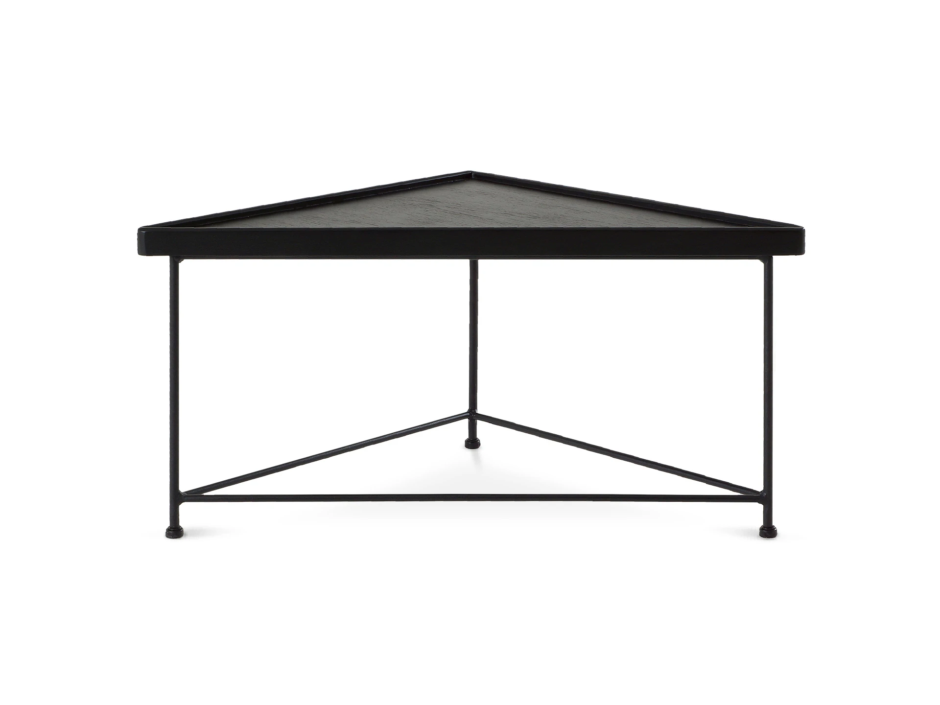 Журнальный столик в минималистичном стиле станет финальным штрихом в любом пространстве. В его дизайне элегантность смело сочетается с ритмичностью формы. Треугольную столешницу из массива дерева поддерживают грациозные ножки из металла, которые дополнительно укреплены перекладинами.