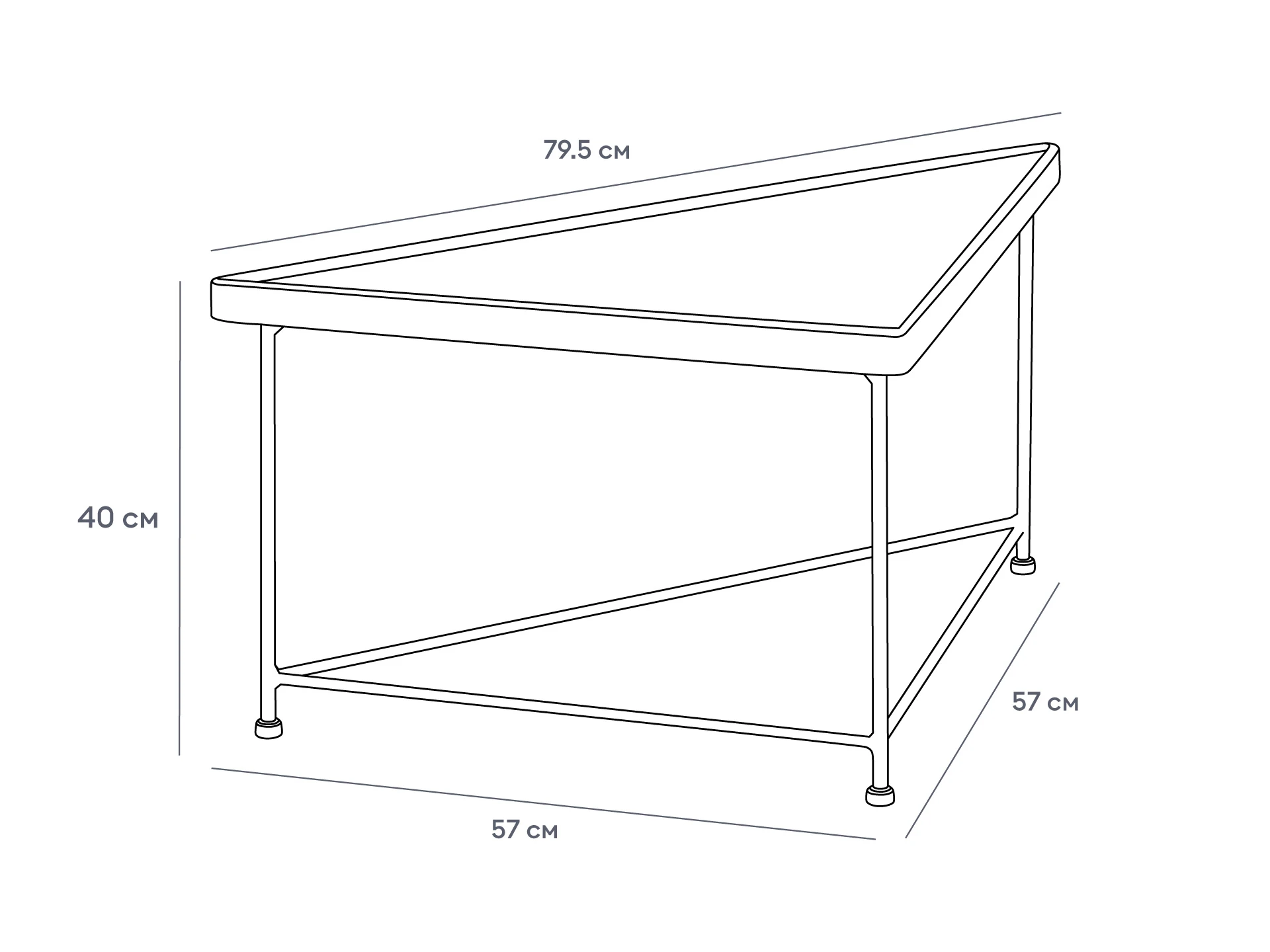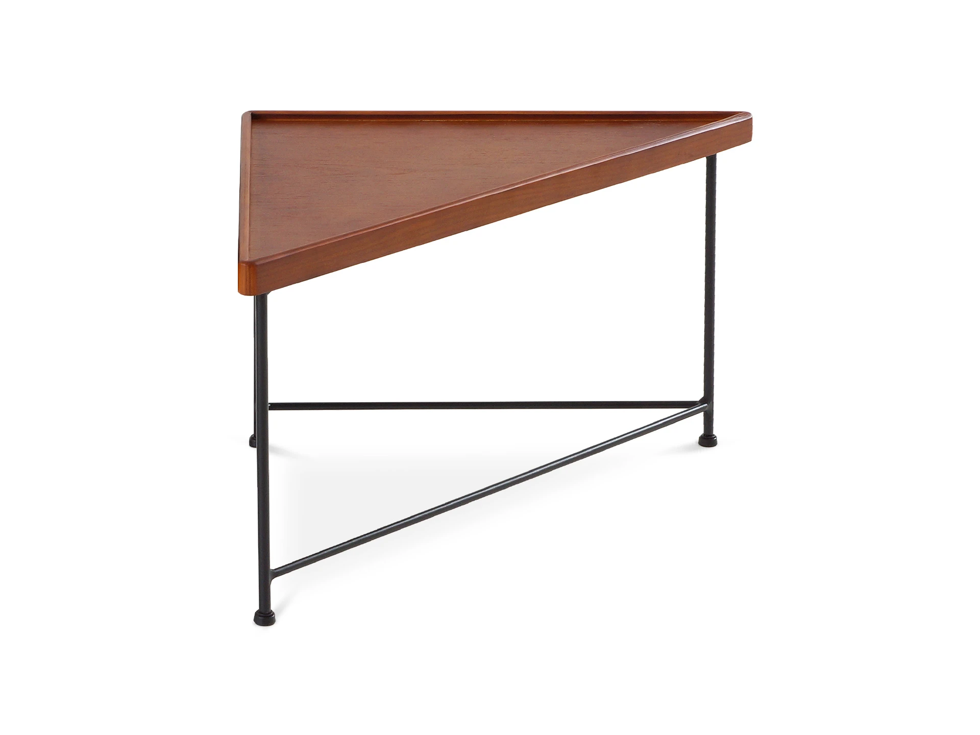 Журнальный столик в минималистичном стиле станет финальным штрихом в любом пространстве. В его дизайне элегантность смело сочетается с ритмичностью формы. Треугольную столешницу из массива дерева поддерживают грациозные ножки из металла, которые дополнительно укреплены перекладинами.