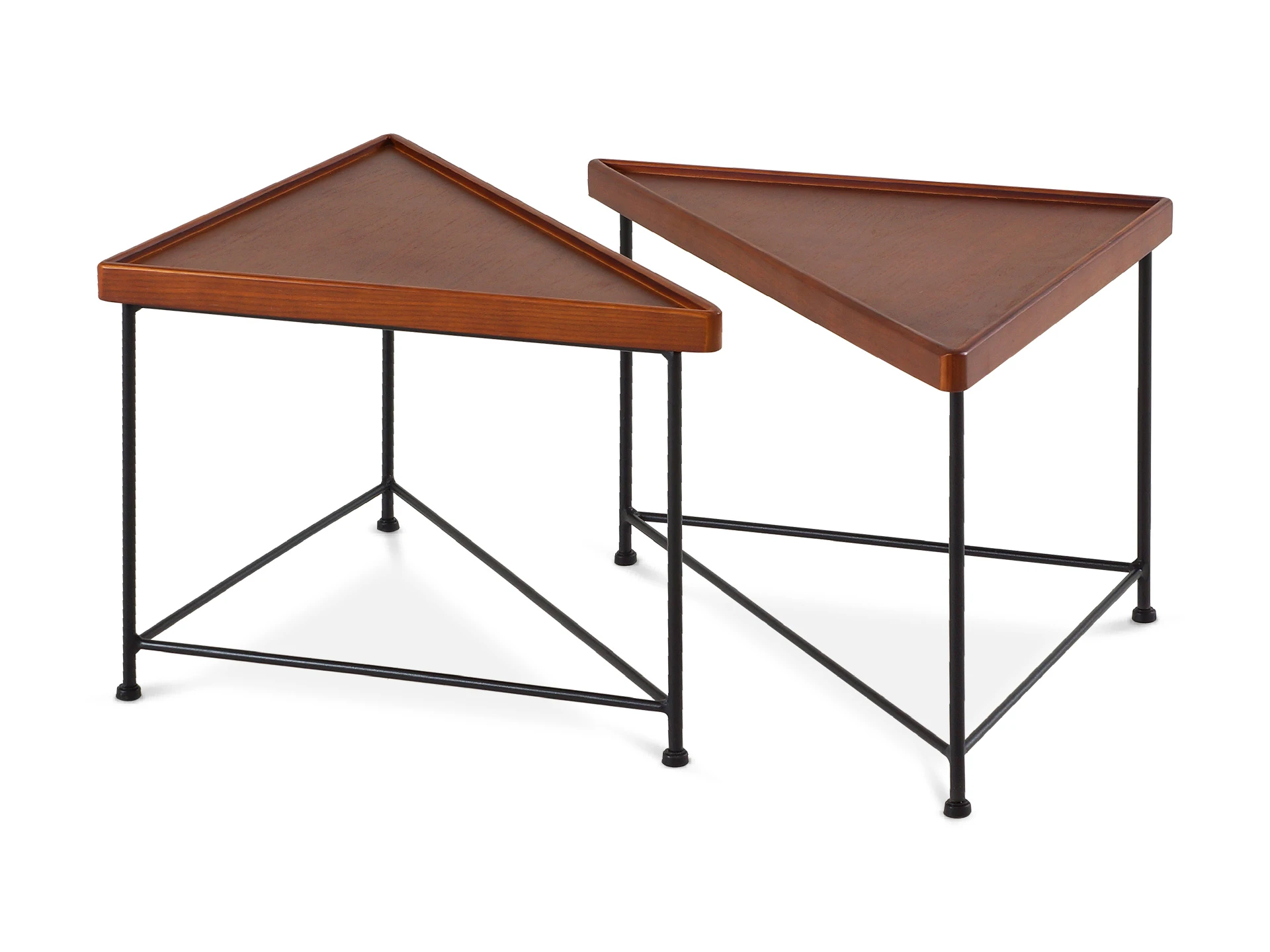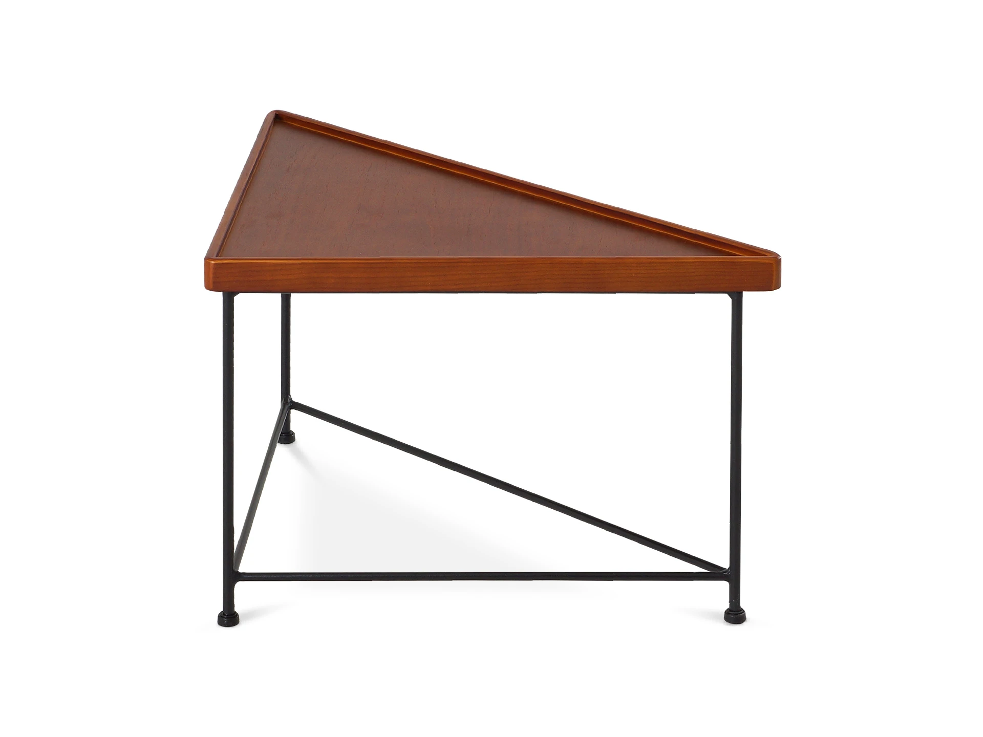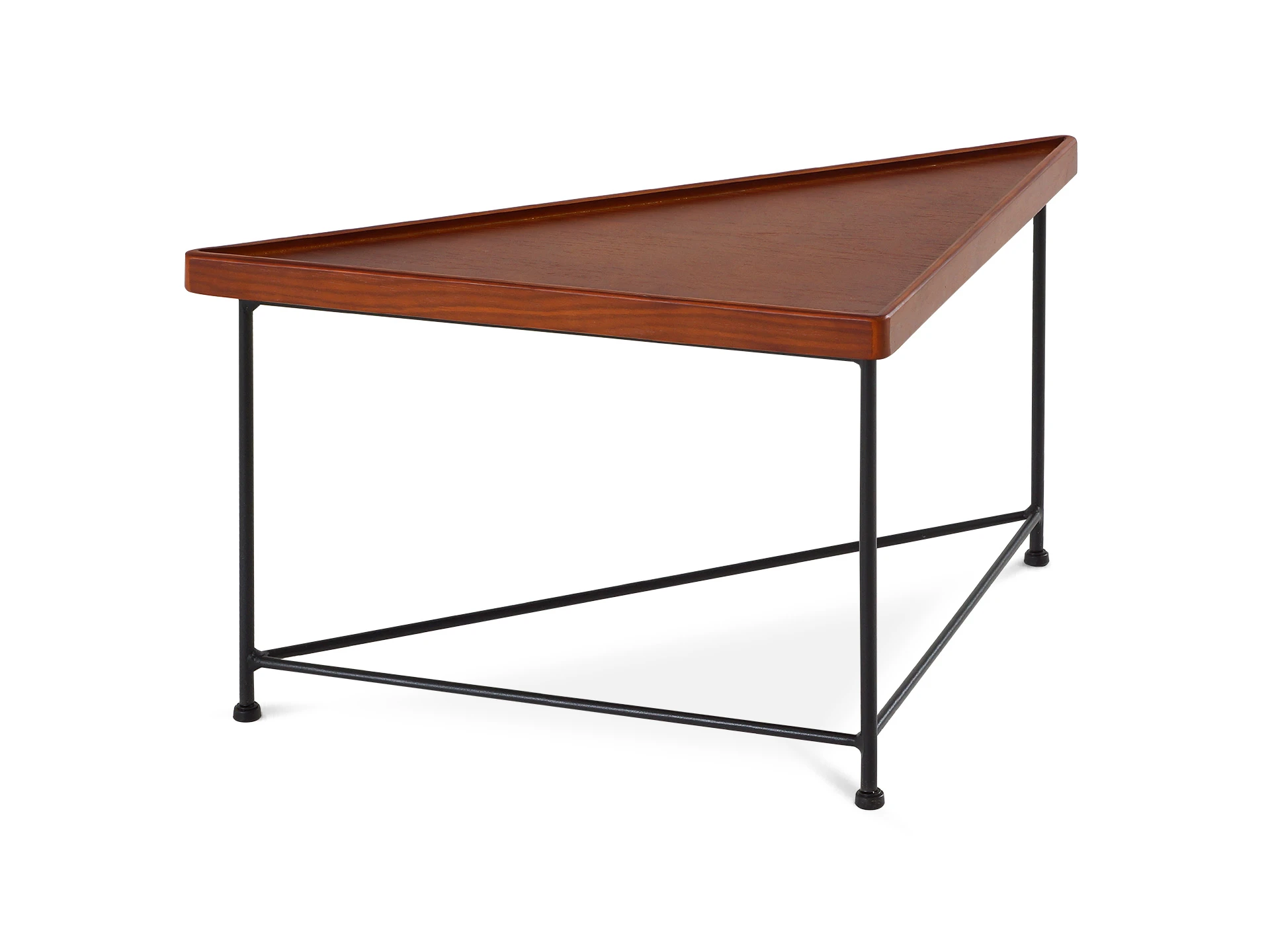 Журнальный столик в минималистичном стиле станет финальным штрихом в любом пространстве. В его дизайне элегантность смело сочетается с ритмичностью формы. Треугольную столешницу из массива дерева поддерживают грациозные ножки из металла, которые дополнительно укреплены перекладинами.