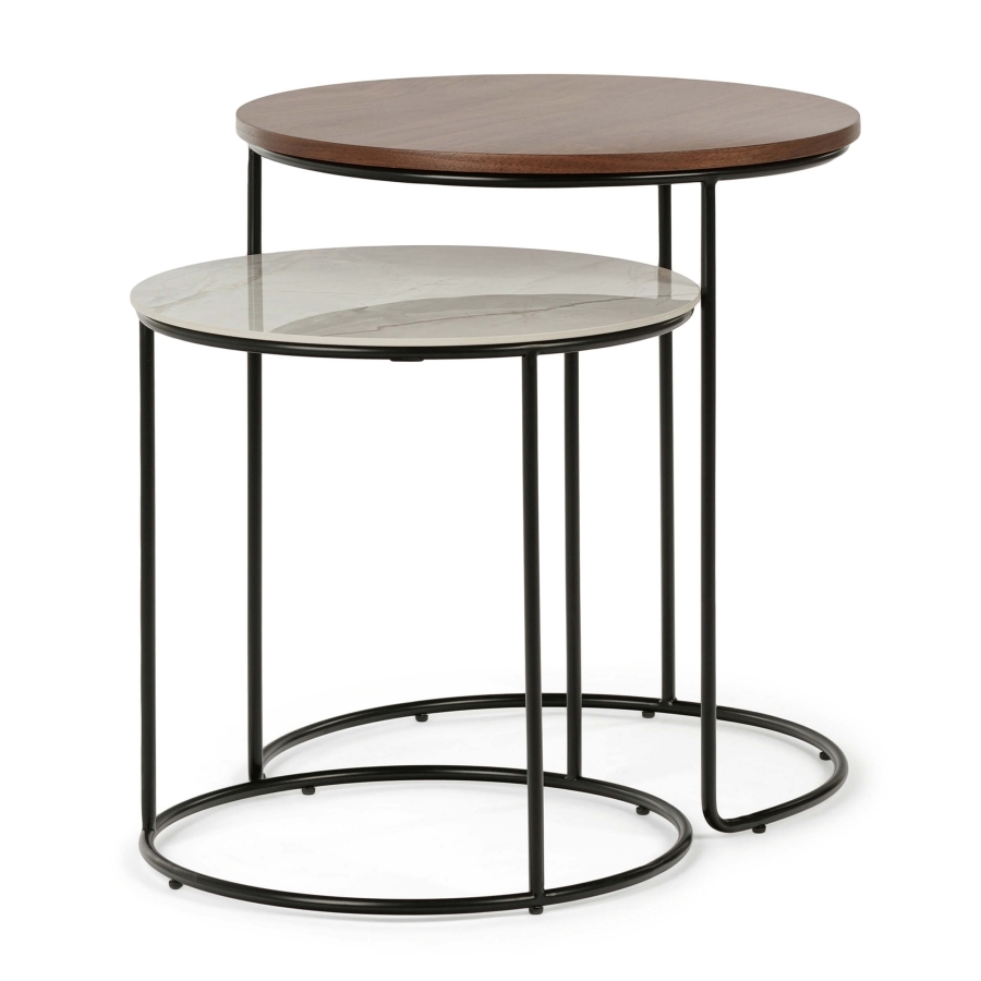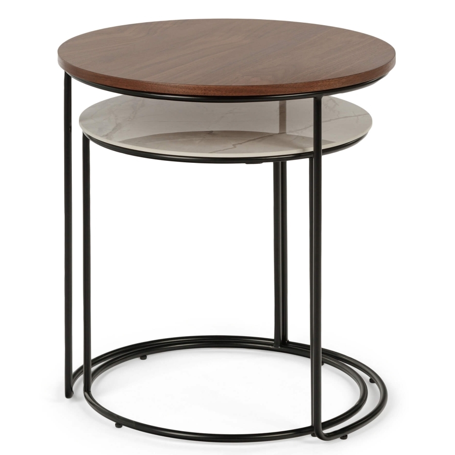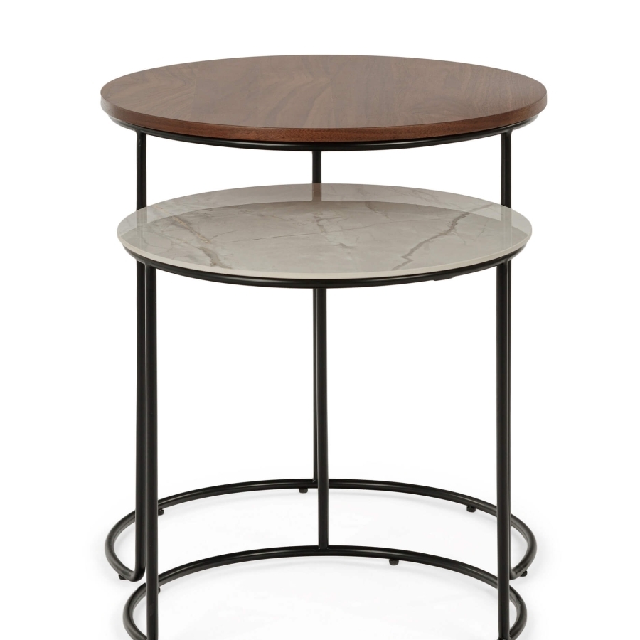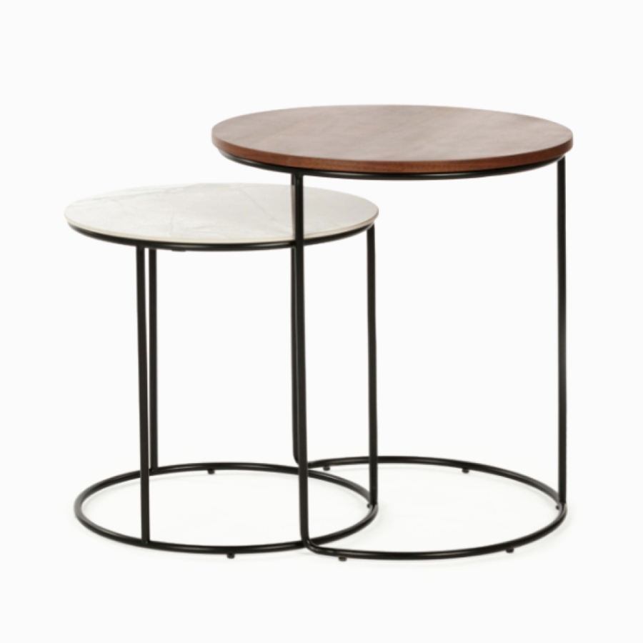Набор кофейных столов Peyton — это стильный элемент мебели. Обратите внимание на основание, которое напоминает нам полную Луну и её половинку. А столешницы словно переливаются карамелью и сливочным ирисом. Мягкое и современное сочетание дизайна для вас!