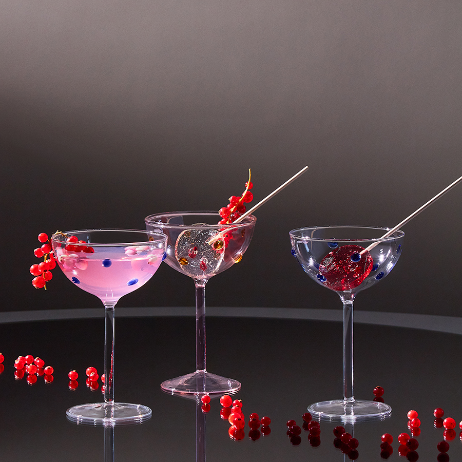 Набор креманок Pom-pon станет прекрасным приобретением для тех, кто любит необычные предметы сервировки. Такой вид посуды идеально подходит для подачи игристых вин и десертов. Коллекция привлекает внимание интересным дизайном – стенки бокалов, стаканов и креманок украшает объемный декор в виде застывших цветных капель.