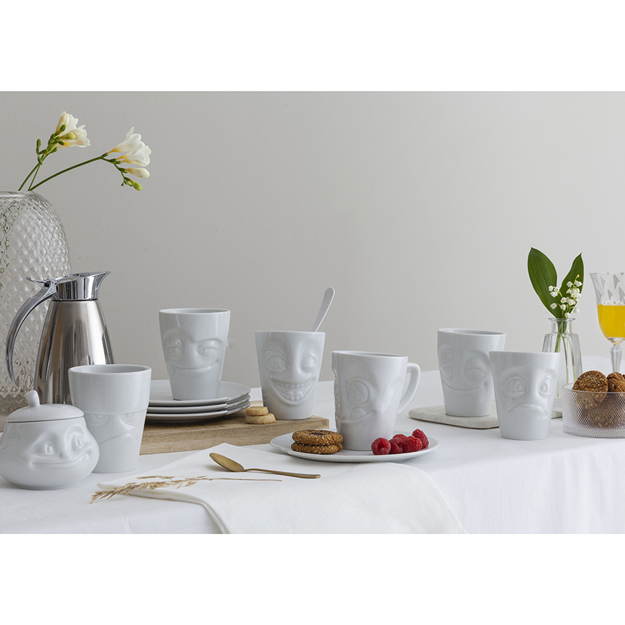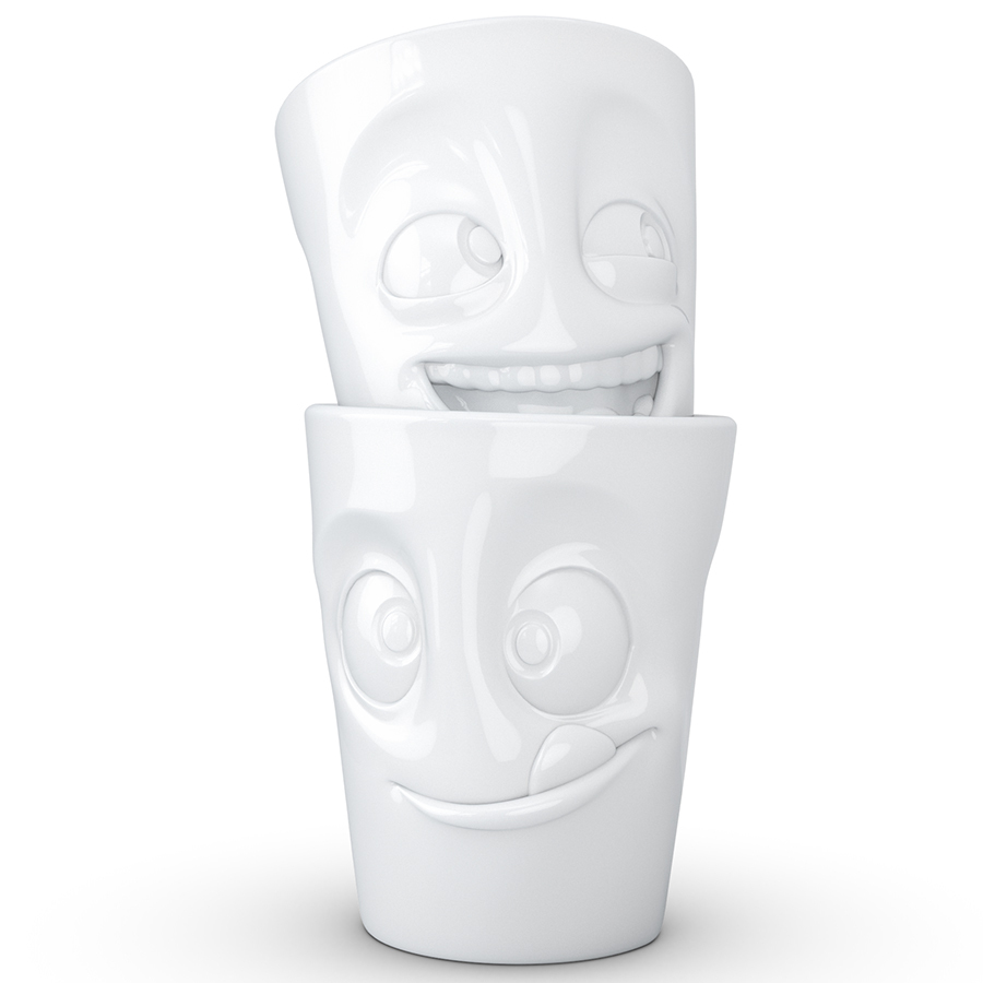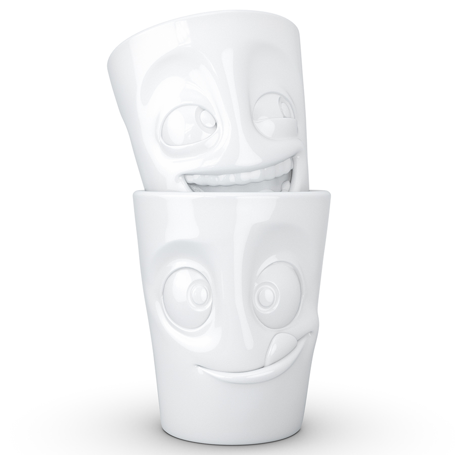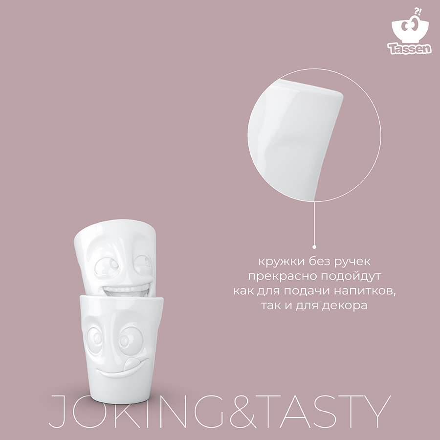 Кружки без ручек с забавными рожицами прекрасно подойдут для подачи любимых напитков..