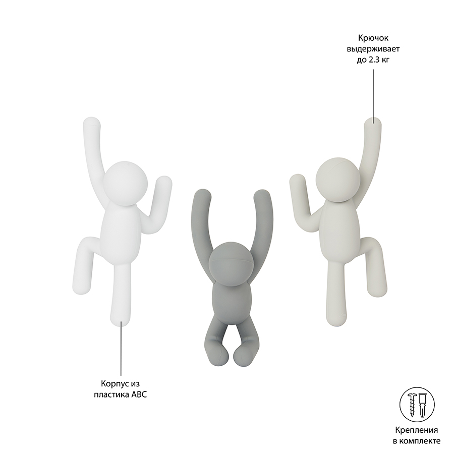 Настенные крючки Buddy в форме забавных человечков помогут навести порядок и украсят пространство.