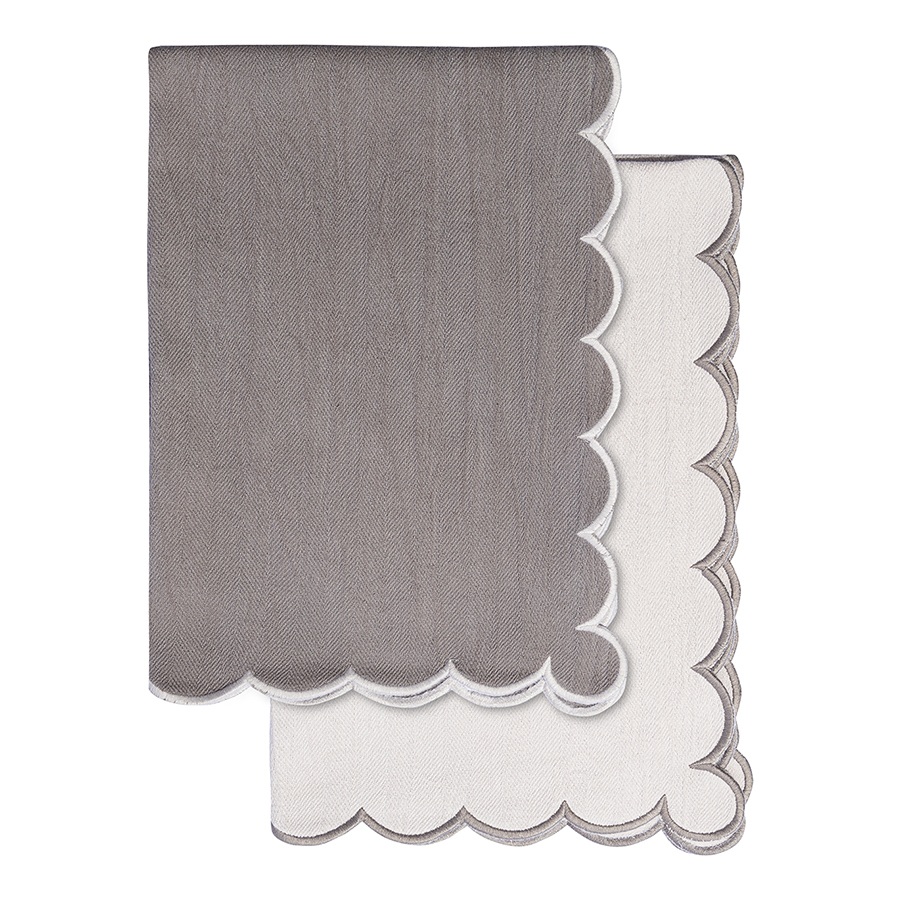 Набор кухонных полотенец с контрастным кантом серого цвета из коллекции Trendy Ruffles идеально подойдет для повседневных задач и в качестве стильного акцента. Текстиль с волнистой отделкой, напоминающей изящные раковины морских гребешков, стал ярким элементом стиля Ар Деко – и сейчас возвращается в моду, появляясь в самых актуальных интерьерных решениях.
