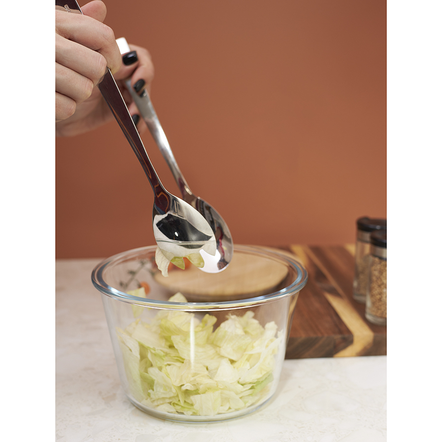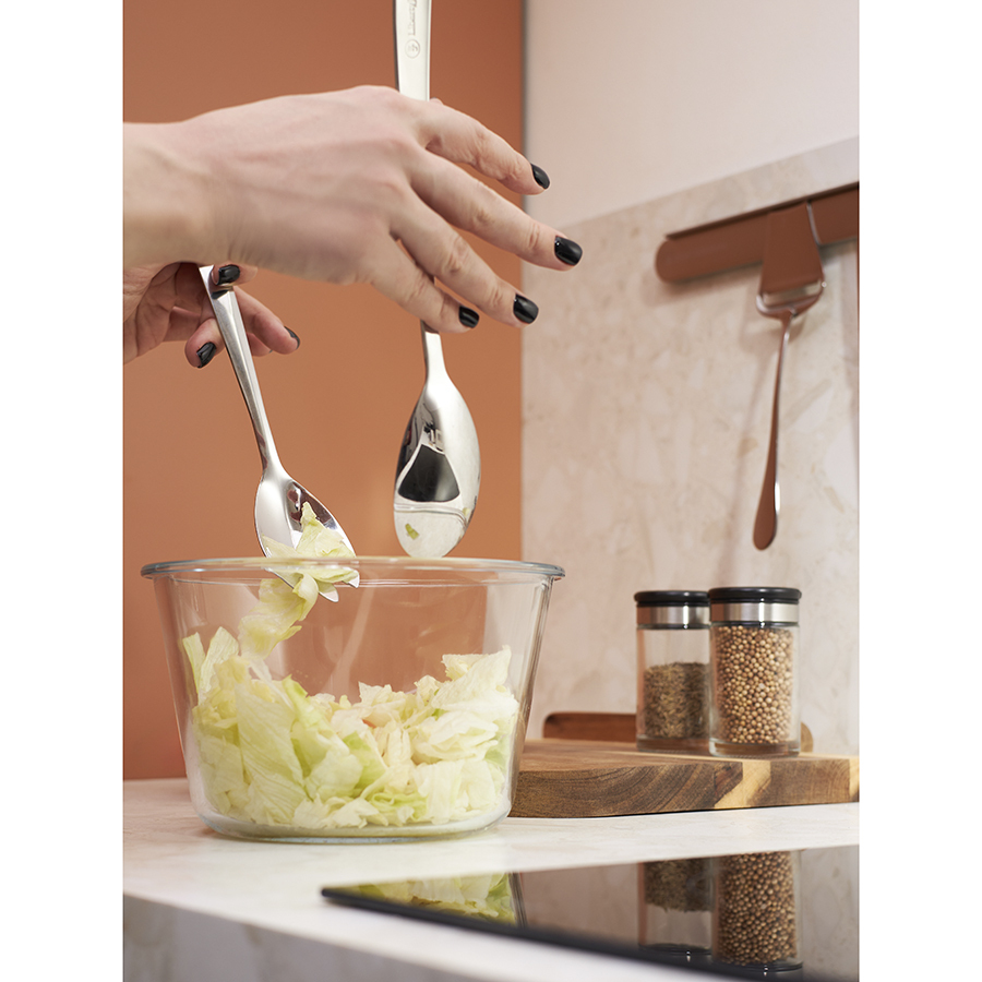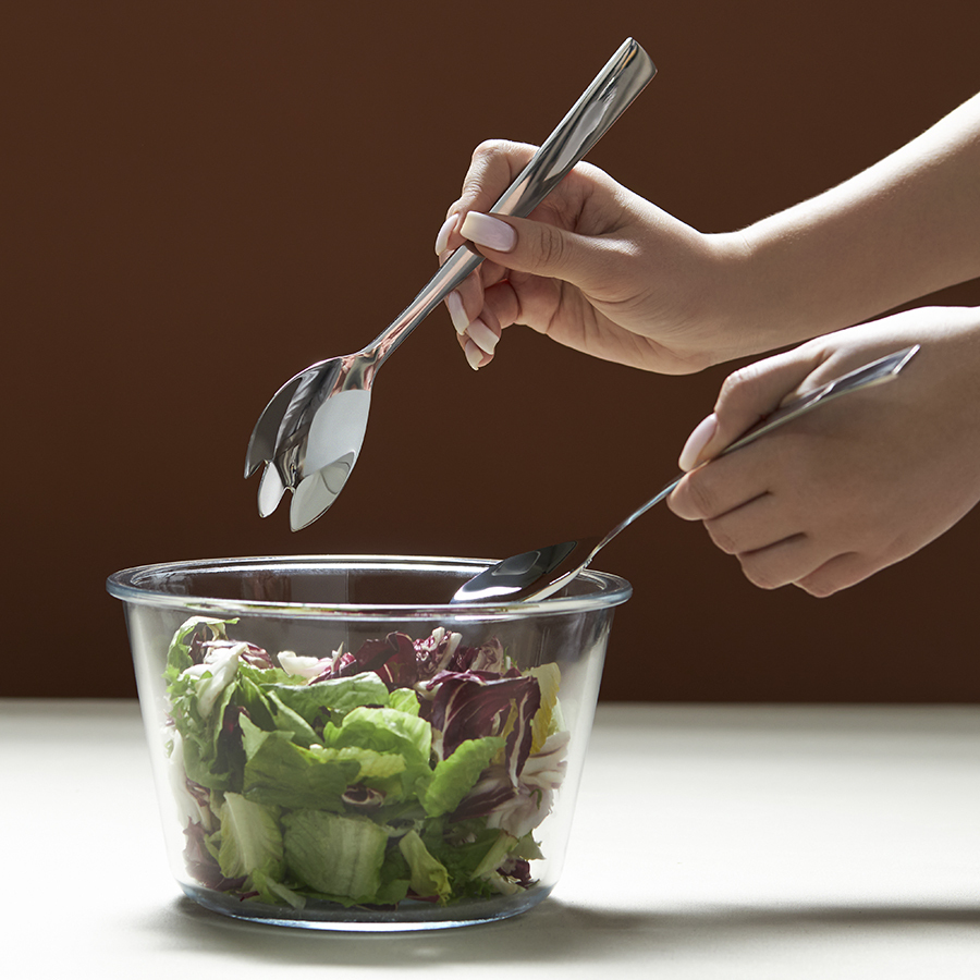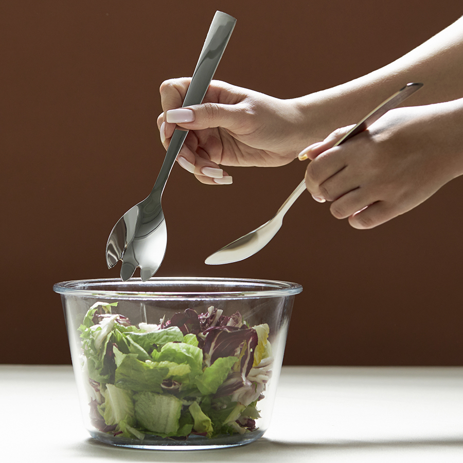 - Одна из ложек оснащена 3 зубчиками, что делает ее идеальным инструментом для аккуратного накладывания салата и захвата деликатных ингредиентов.