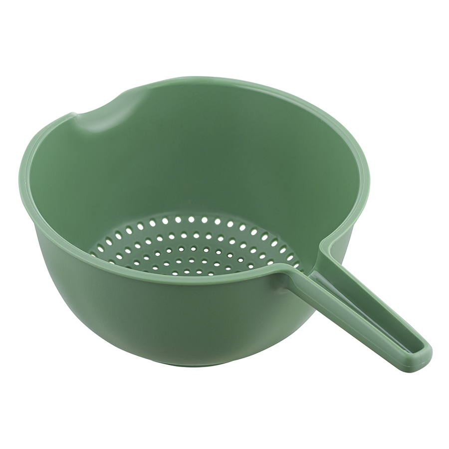 - Чаши для смешивания и дуршлаг оснащены удлиненными ручками для удобного хвата и специальными “носиками” для аккуратного слива воды и переливания готовой смеси.
