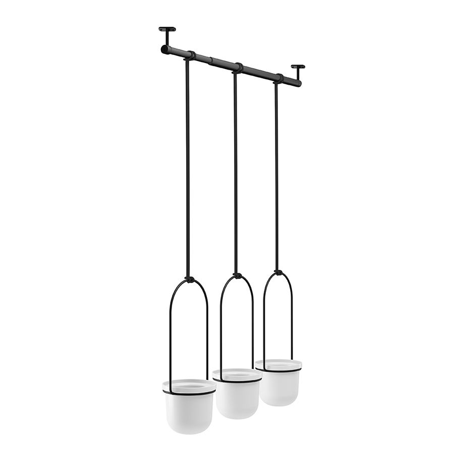 Подвесные горшки Triflora от Umbra станут оригинальным украшением на стене или окне, а также позволят компактно разместить сразу несколько растений и обеспечат их удобный полив. Изготовленные из прочного формованного полипропилена, полученного из вторичной переработки, они остаются легким даже с комнатной зеленью внутри.