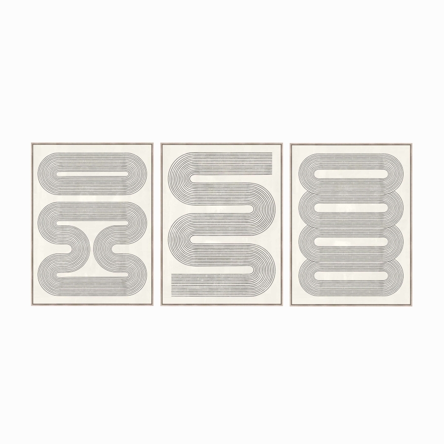 Серые тона с бежевыми акцентами придают постерам элегантность, а геометричный дизайн добавляет современности и динамики. Внушительные размеры делают набор отличным выбором для акцентной стены, придавая глубину и характер любому помещению.