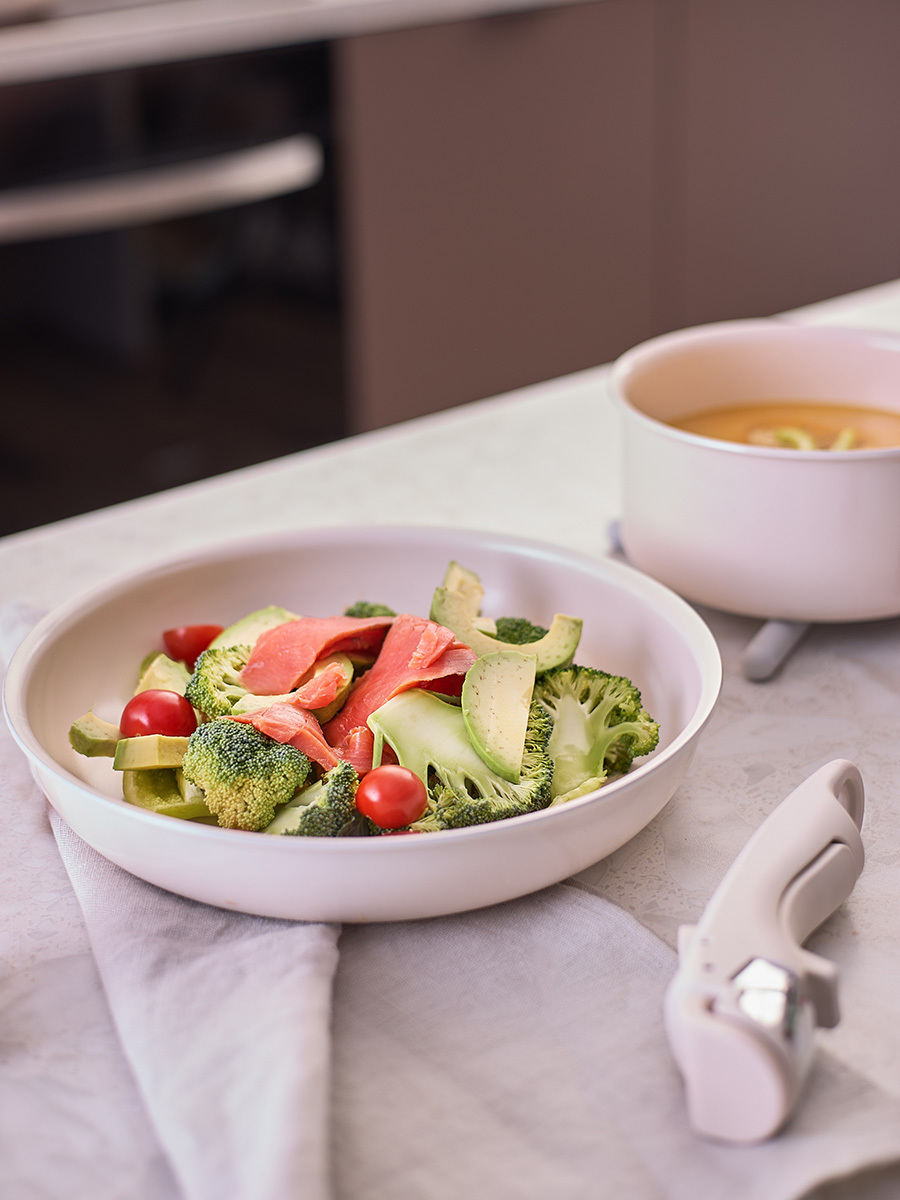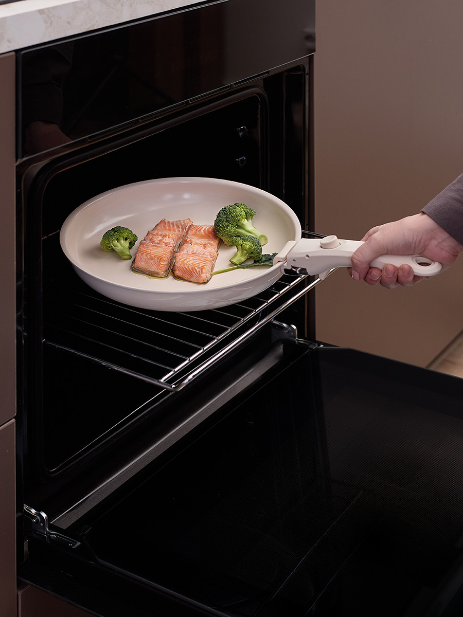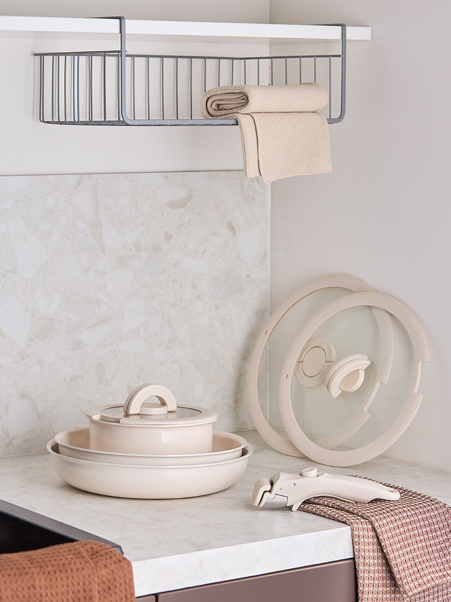 Набор Smart Ceramic – уникальное сочетание традиций и инноваций для тех, кто ценит качество и удобство на кухне. Посуда с керамическим покрытием позволяет приготовить вкусные и сочные блюда практически без добавления масла. Оригинальная округлая форма и съемная ручка делают использование и хранение максимально удобным – сковороды и ковш легко помещаются в холодильнике или на полке шкафа, экономя пространство, а их гладкая поверхность быстро очищается от любых загрязнений.