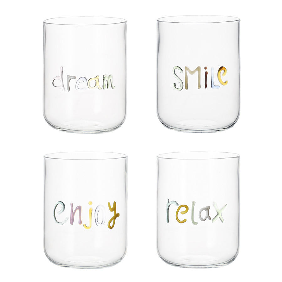 Набор стаканов Cheers станет настоящей находкой для тех, кто любит необычные предметы сервировки. Такая посуда идеально подходит для подачи холодных напитков. Набор привлекает внимание интересным дизайном – стенки стаканов украшает рельефная, цветная надпись.