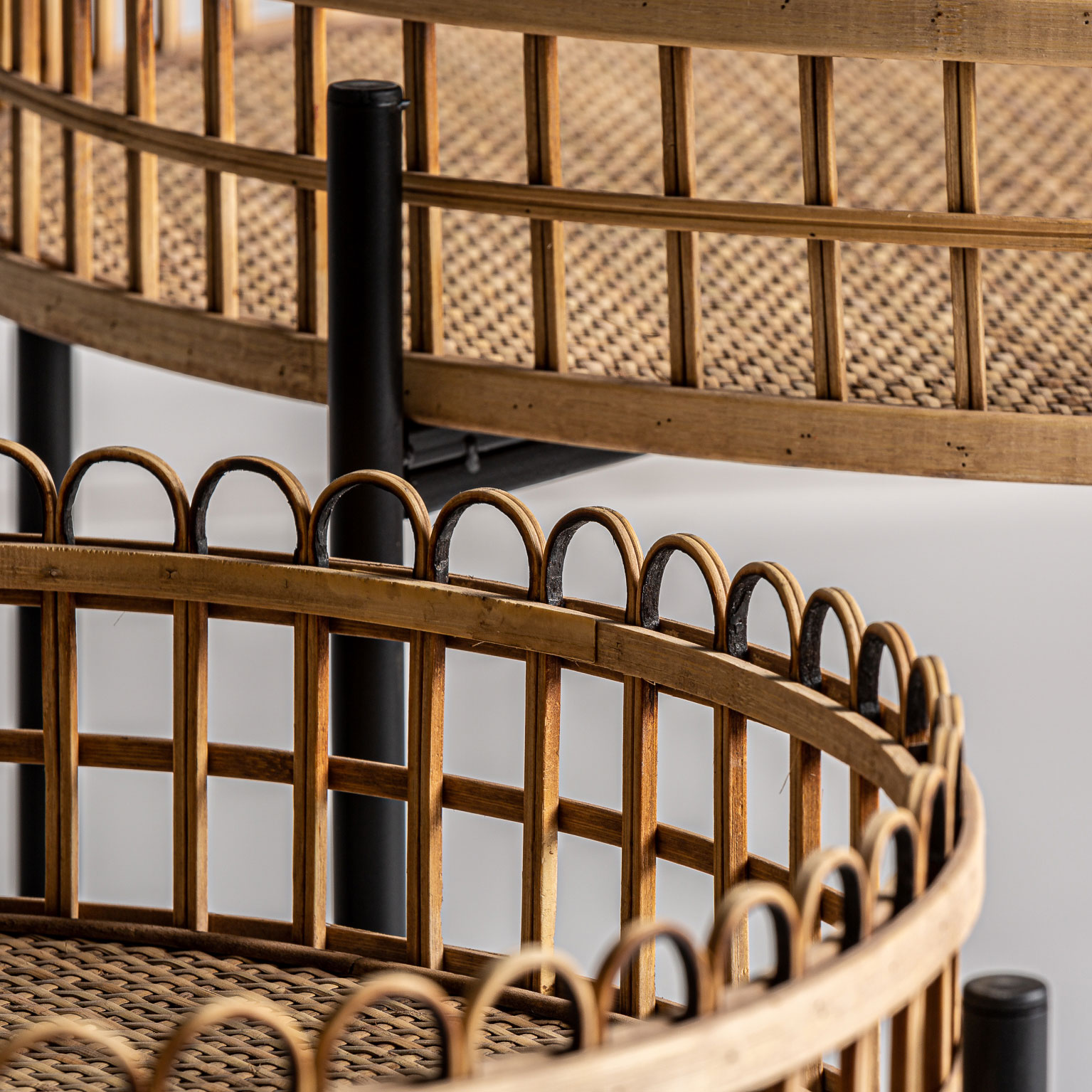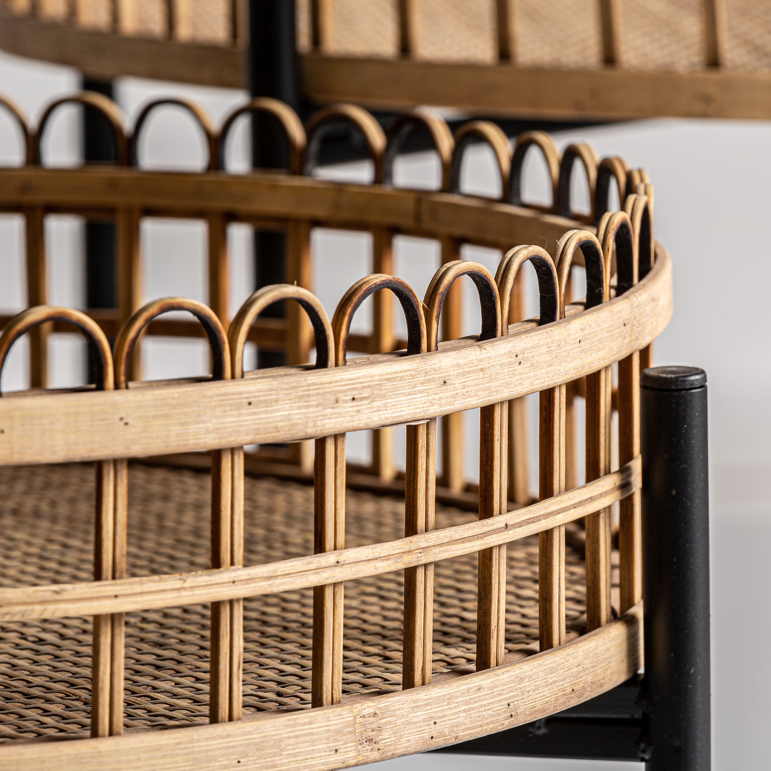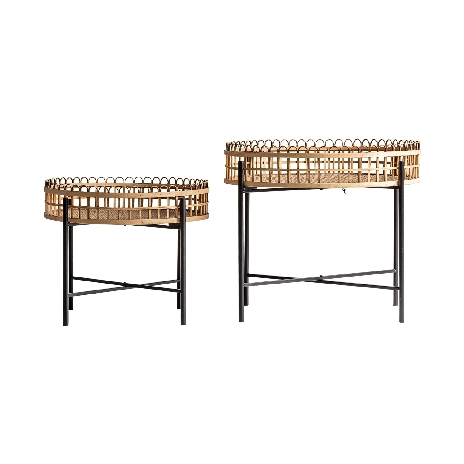 Набор столиков TRAVNIK от фабрики Vical — ротанговая столешница с бамбуковой отделкой.
