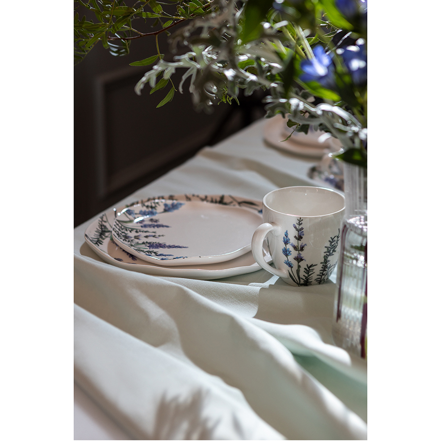 Тарелки для сервировки из фарфора Floral – прекрасный вариант для всех, кто ценит сочетание качества и эстетики. Цветущая лаванда, изображенная на белоснежной поверхности, превращает посуду в настоящее украшение стола. Материал изготовления неприхотлив в уходе, не впитывает загрязнения, является экологичным и безопасным для здоровья.