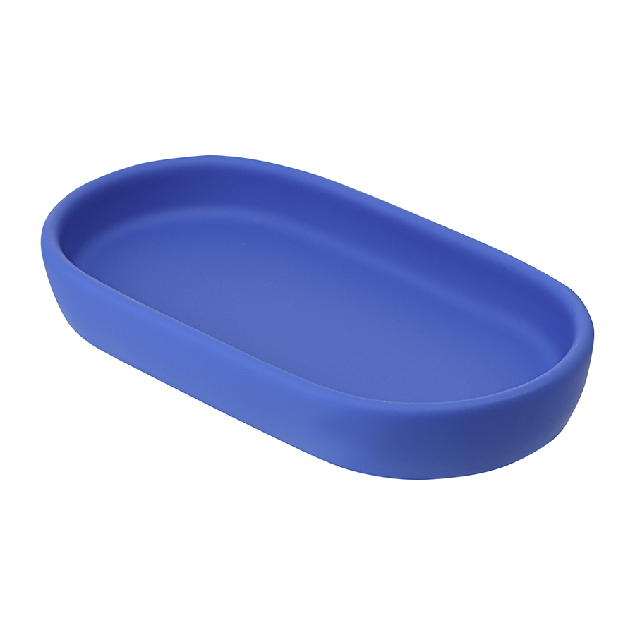 Набор ванных принадлежностей Flow в цвете "синий индиго" поможет организовать пространство вашей ванной комнаты и добавит в интерьер яркий акцент. В комплект входят диспенсер для жидкого мыла, стакан для зубных щеток, мыльница и специальная подставка. Все изделия выполнены из керамики и имеют специальное покрытие софт-тач, которое не только приятно на ощупь, но и обладает антискользящим эффектом.