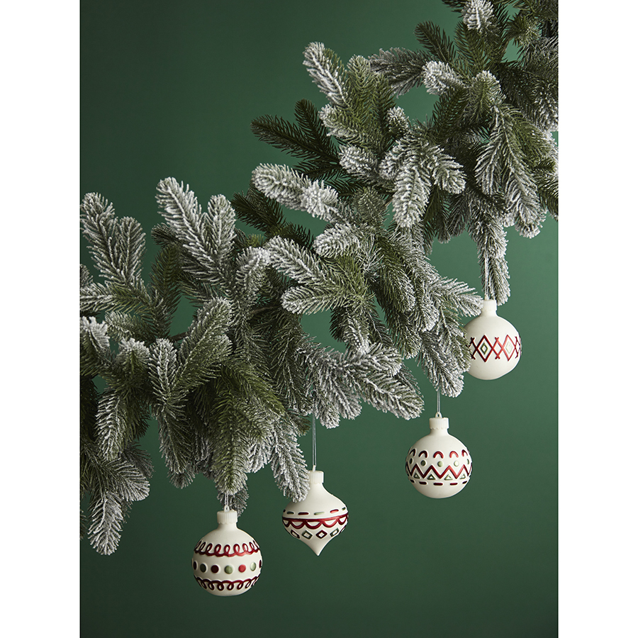 С набором украшений Festive Embroidey из коллекции New Year Essential ваша ёлка превратится в настоящее произведение искусства. Эти игрушки из фарфора эффектно выделяются на фоне других не только благодаря изящному дизайну, но и за счет наличия подсветки. Они, словно волшебные артефакты, наполняют пространство ощущением радости в ожидании новогодних чудес.