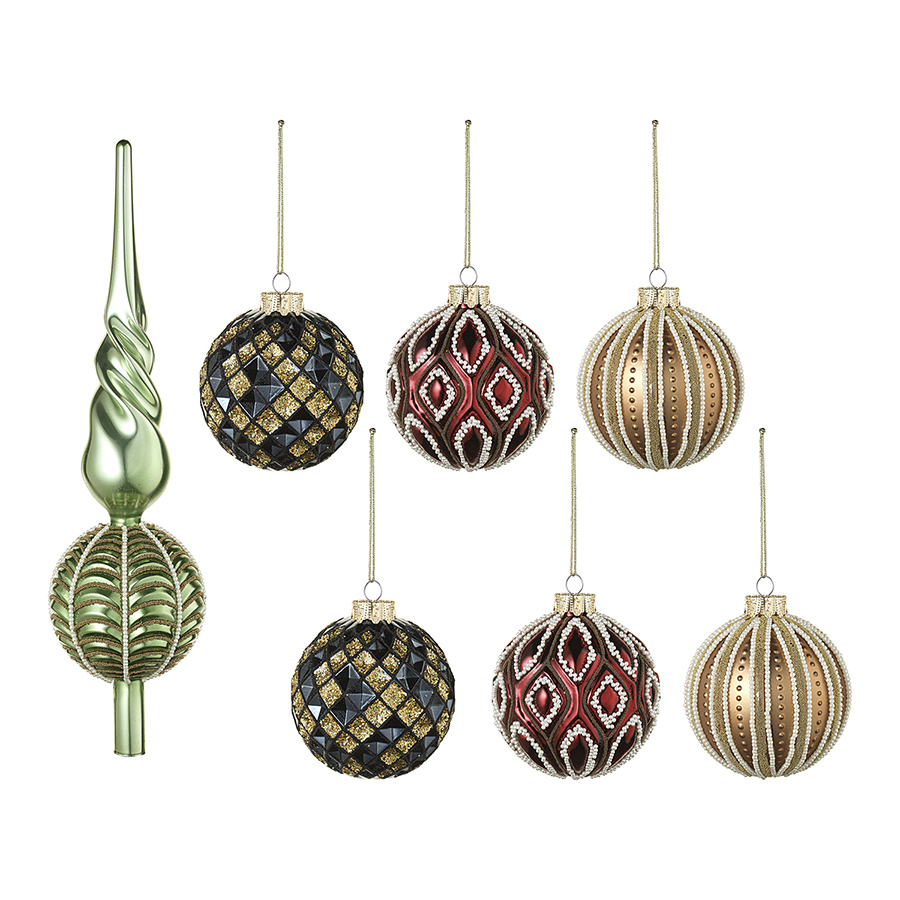 Размеры: шары – 9,1х9,1х9,1 см; верхушка – 9,5х9,5х37 см.
