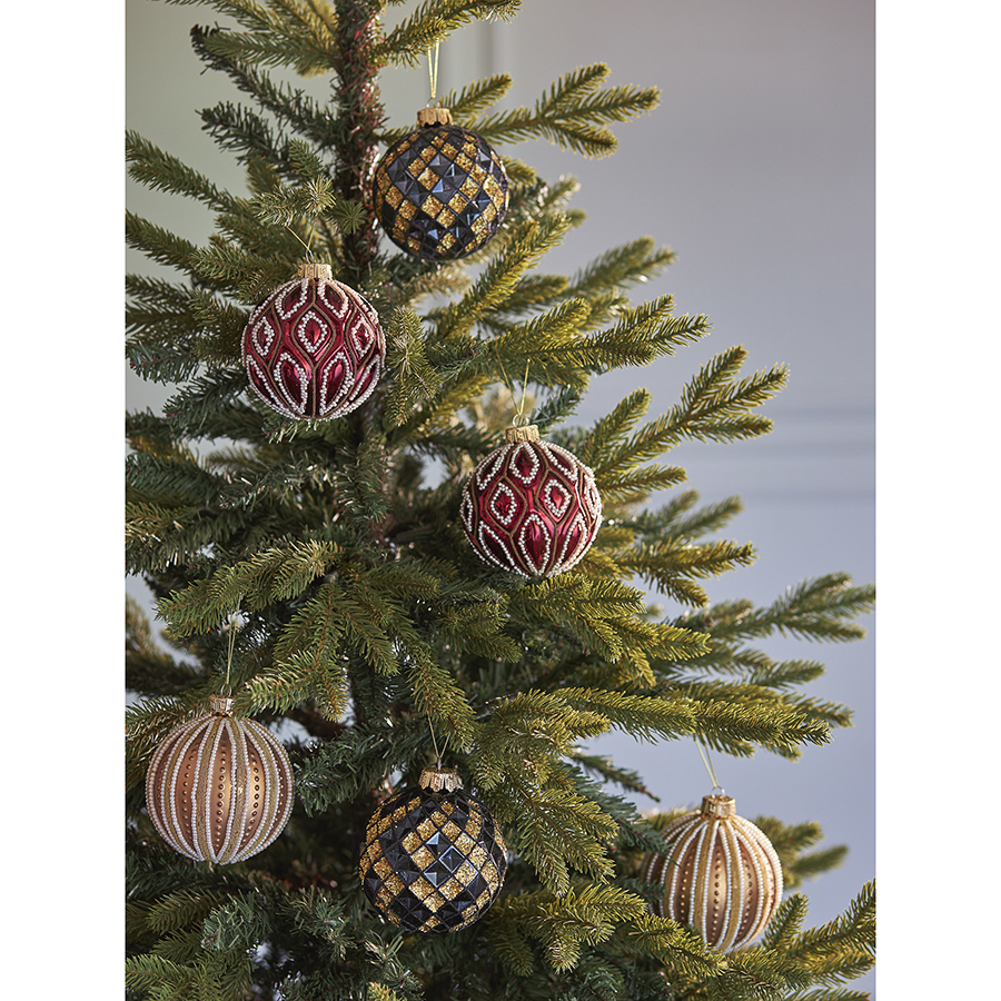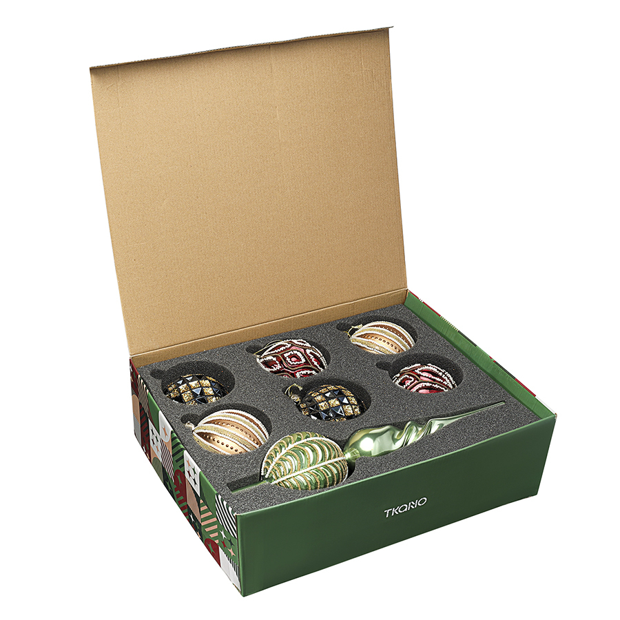 Набор украшений Vitrage из коллекции New Year Essential идеально подойдет для тех, кто в праздничном оформлении интерьера предпочитает классические решения. Каждый шарик имеет свой уникальный дизайн – за счет элементов разных форм и оттенков создается эффект витражного стекла.