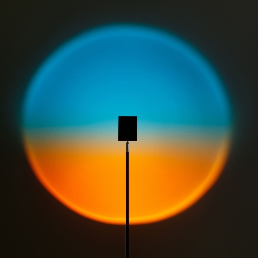 Светильник выполнен в эффектном сочетании черного, голубого и оранжевого цветов. Это смелое трио создает динамичный и жизнерадостный вид, который легко вписывается в современные интерьеры, добавляя им индивидуальности и характер.