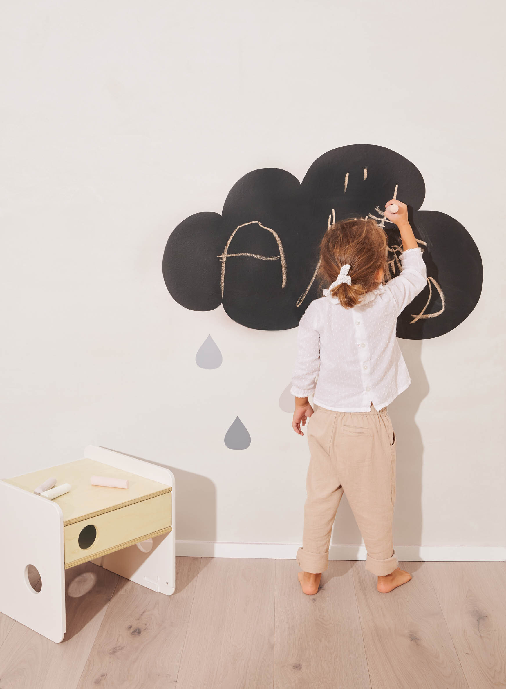 Настенная наклейка Agripa – это чудесное облако из винила, на котором можно рисовать мелом. Простой монтаж к любой поверхности и такой же легкий демонтаж сохраняет стену от шедевров юного художника. А возможность многократного использования зарядит его творчеством надолго.