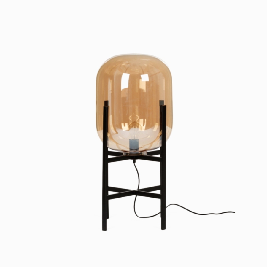 Его внешний вид очень вытянут и устойчив за счет его необычных черных ножек, которые так элегантно пересекаются под красивой лампой.
