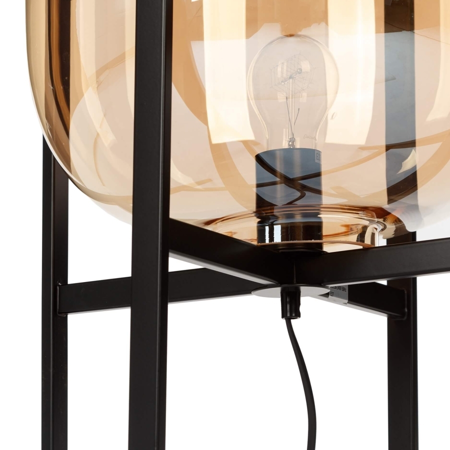 Светильник представляет собой классическую настольную модель с янтарным стеклянным абажуром и металлическим корпусом, выполненную в стиле коллекции Bottle.