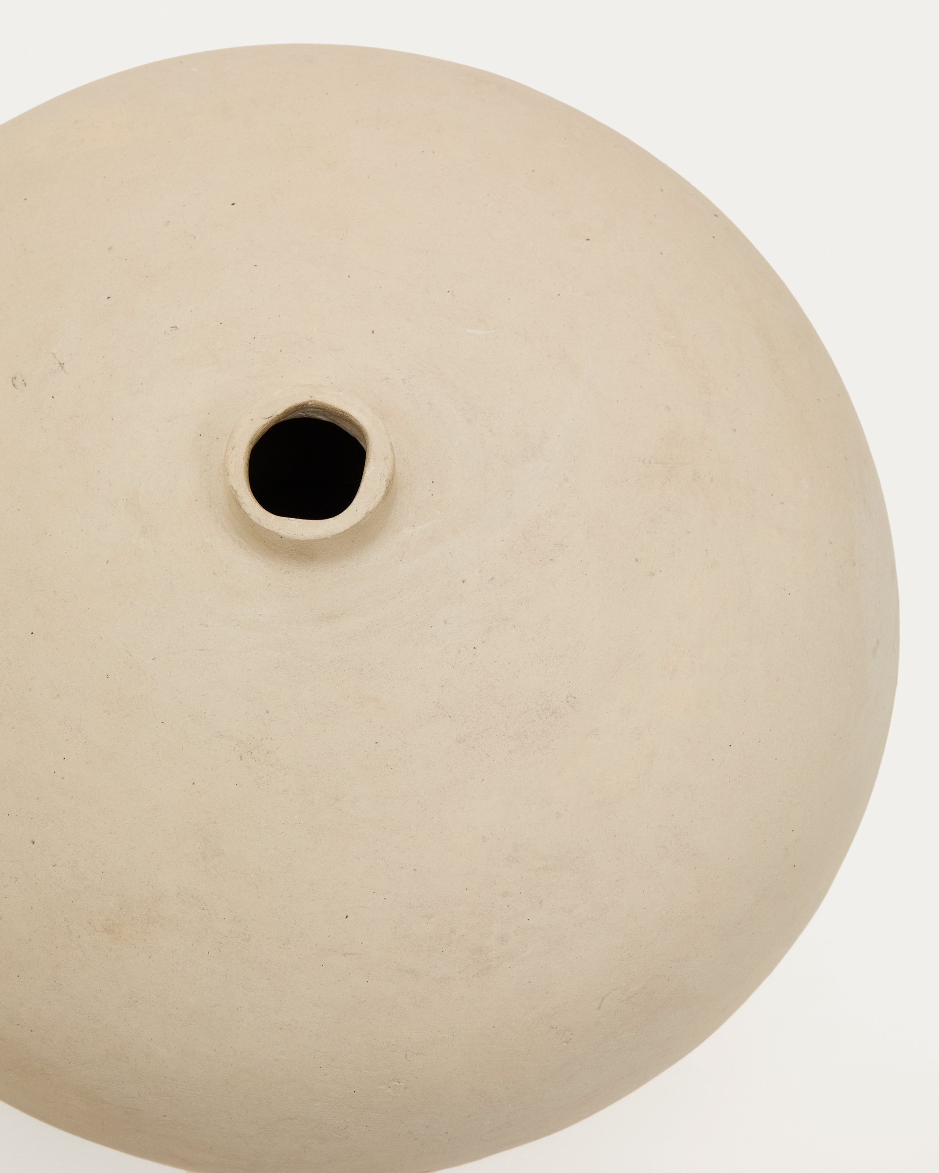 Эта ваза из папье-маше с круглой формой и гладкой отделкой сочетает в себе простоту и элегантность. Ее компактный и органичный дизайн делает ее универсальным предметом, идеально подходящим для добавления тепла и естественного ощущения в любой уголок дома.
