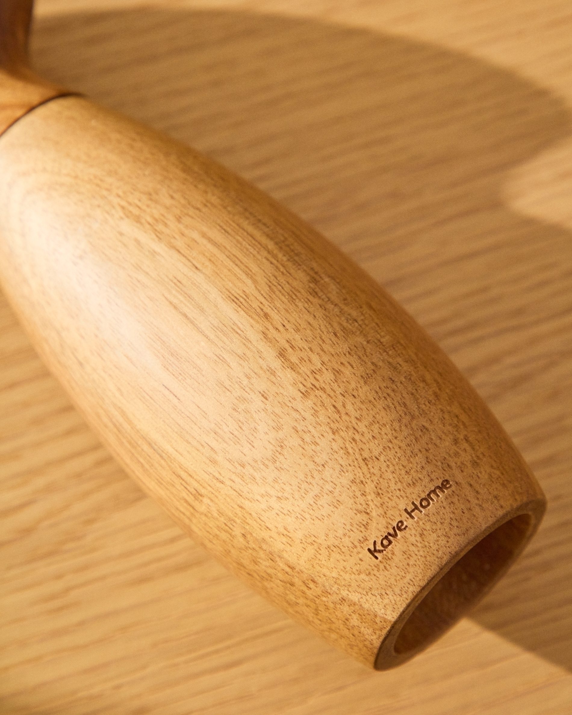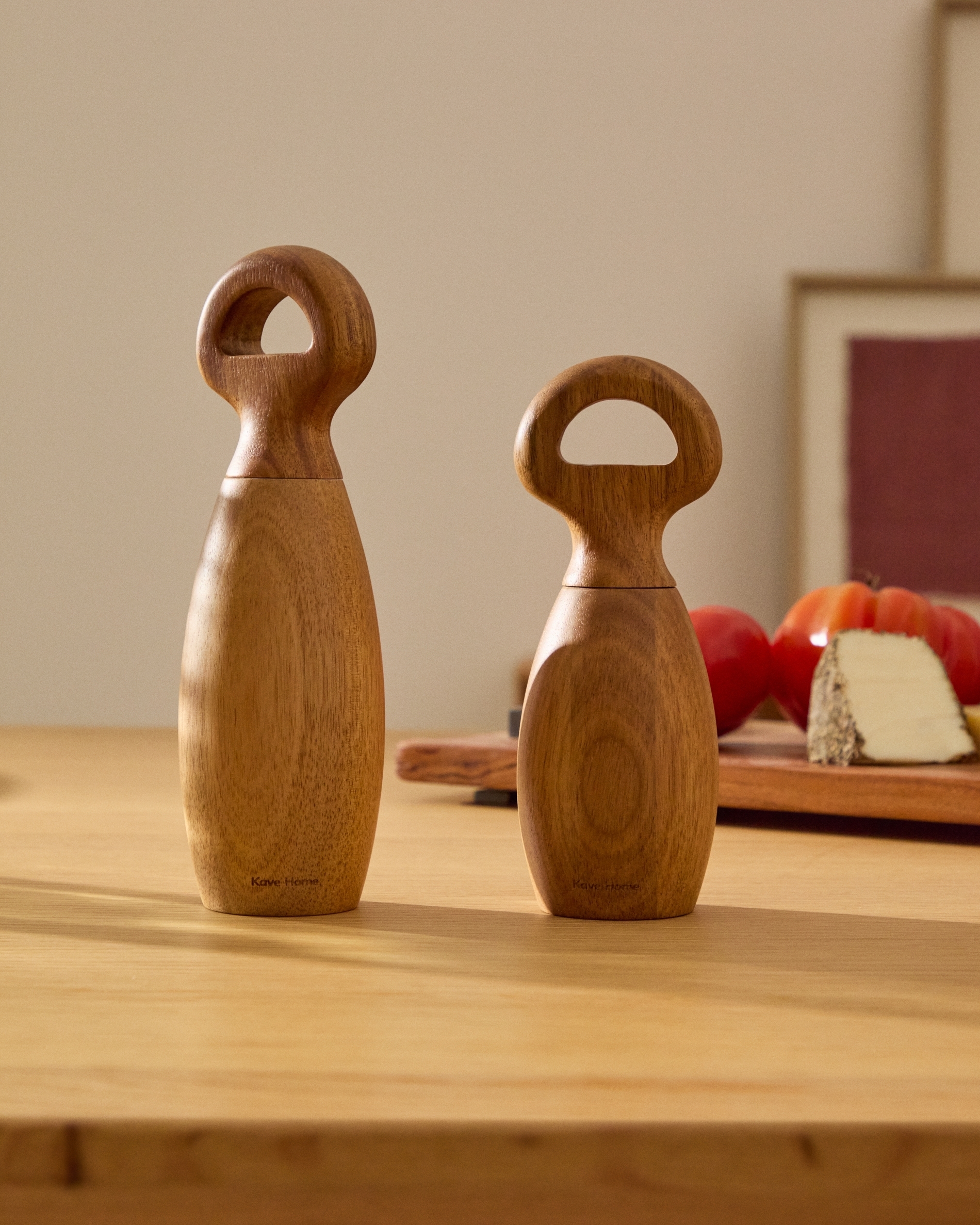 Коллекция Nukha acacia wood разработана с округлыми формами, которые сочетают функциональность и элегантность. Каждый предмет подчеркивает естественную красоту дерева, с гладкой, прочной отделкой, которая приносит тепло и органический стиль на вашу кухню.