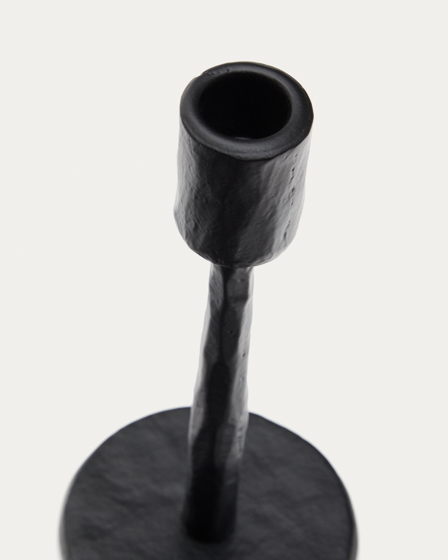 Подсвечник полностью сделан из алюминия. Металл окрашен в черный цвет матовой краской. Технология порошкового нанесения обеспечивает идеальное покрытие, которое подчеркивает фактурную поверхность.
