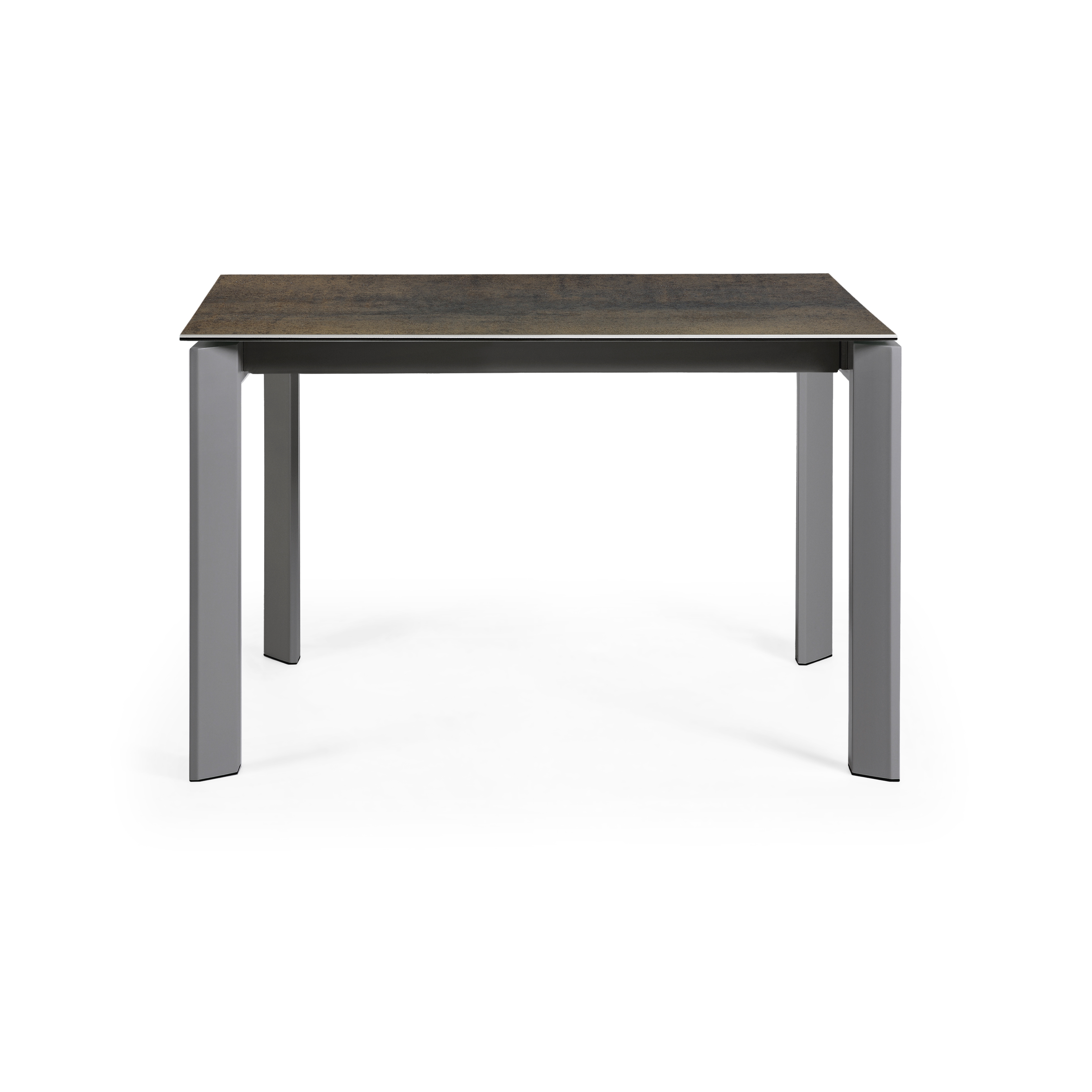 Стол прямоугольной формы. Столешница толщиной 1 см сделана из ударопрочной керамики графитового или коричневого цвета (для базовых моделей). Данный материал практичный, стойко переносит воздействие высоких температур, легко очищается от загрязнений.