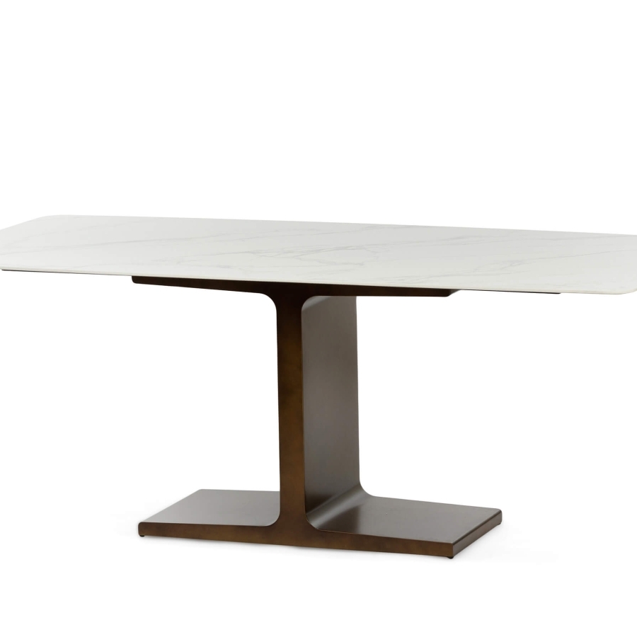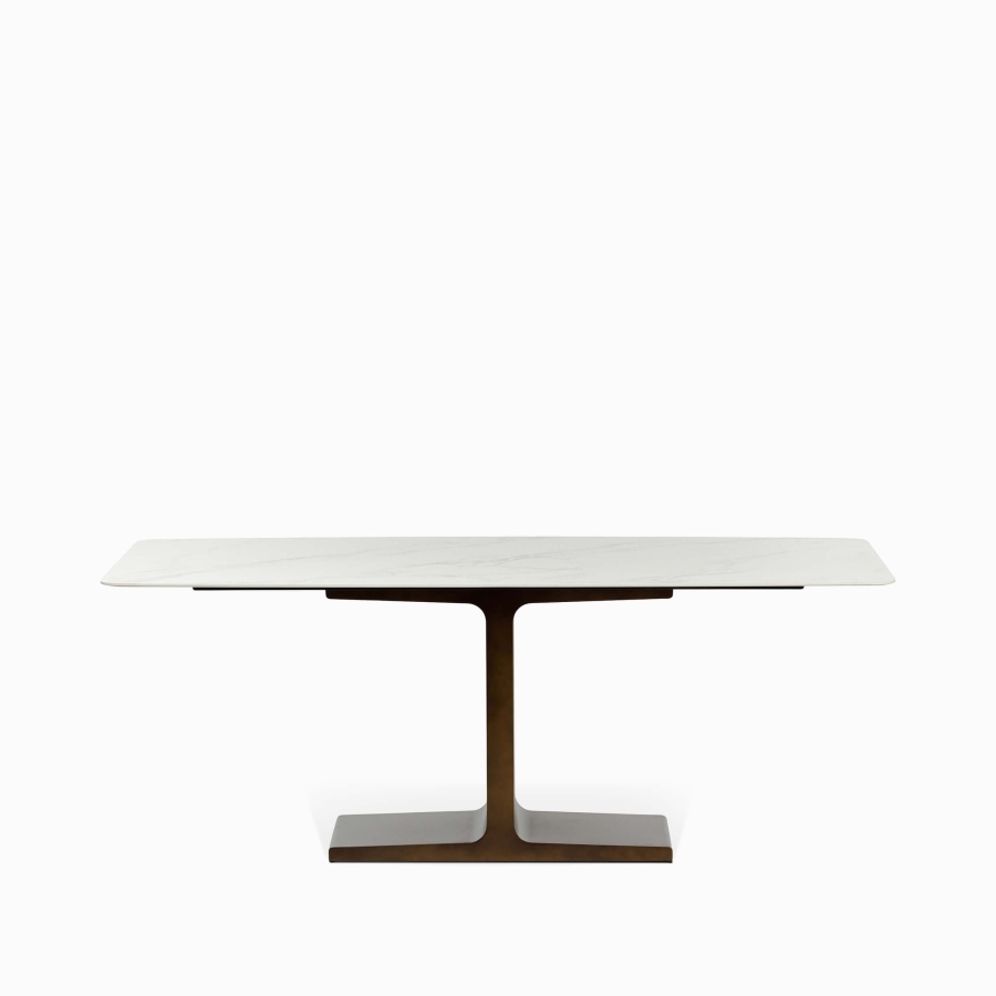 Простая I -образная форма стола образована сочетанием линии и поверхности, а стальное основание изготовлено вручную. Классические цвета и элегантные линии придают неповторимый вид обеденному столу.