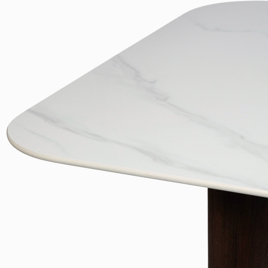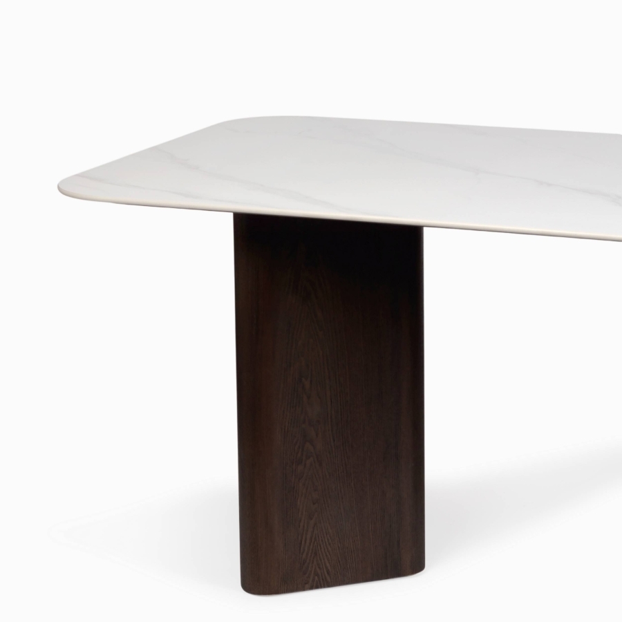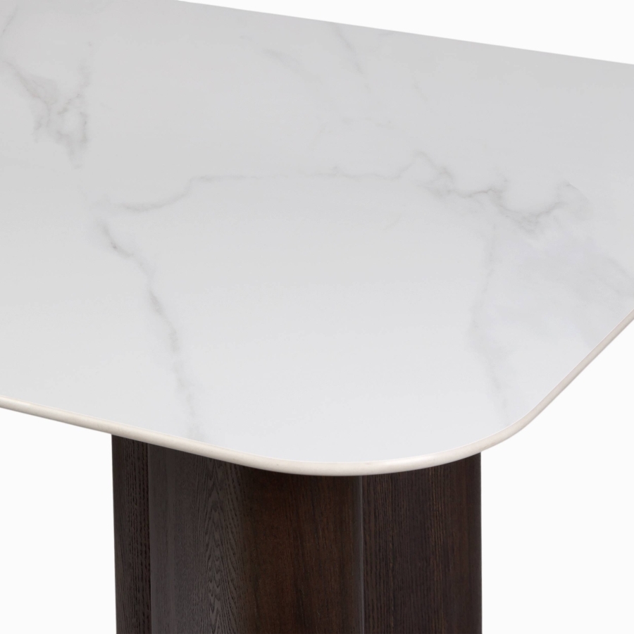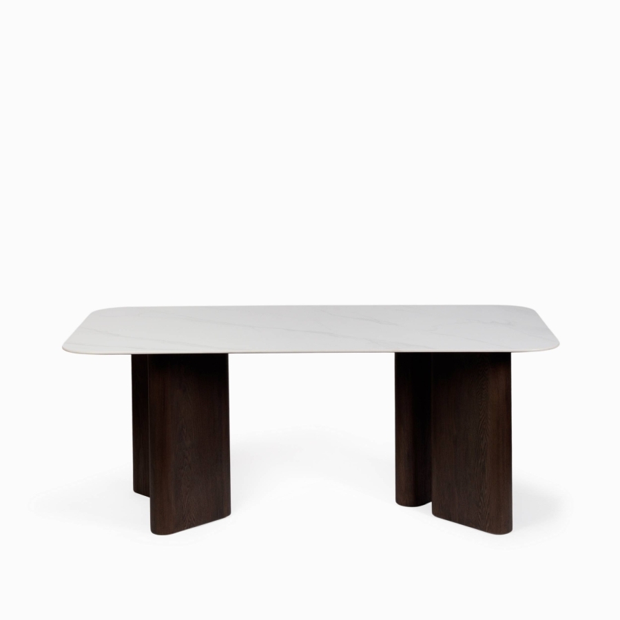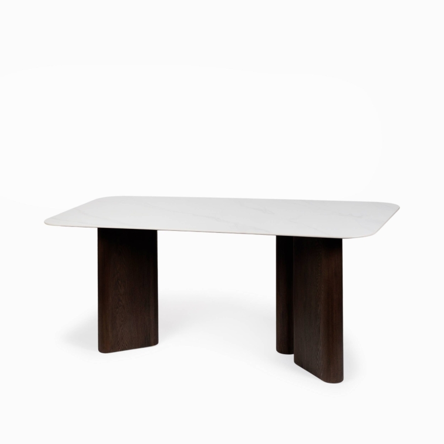 Ножки из ясеня в коричневом цвете добавляют теплоту и натуральность, обеспечивая надежную поддержку и гармонично дополняя общий дизайн стола.