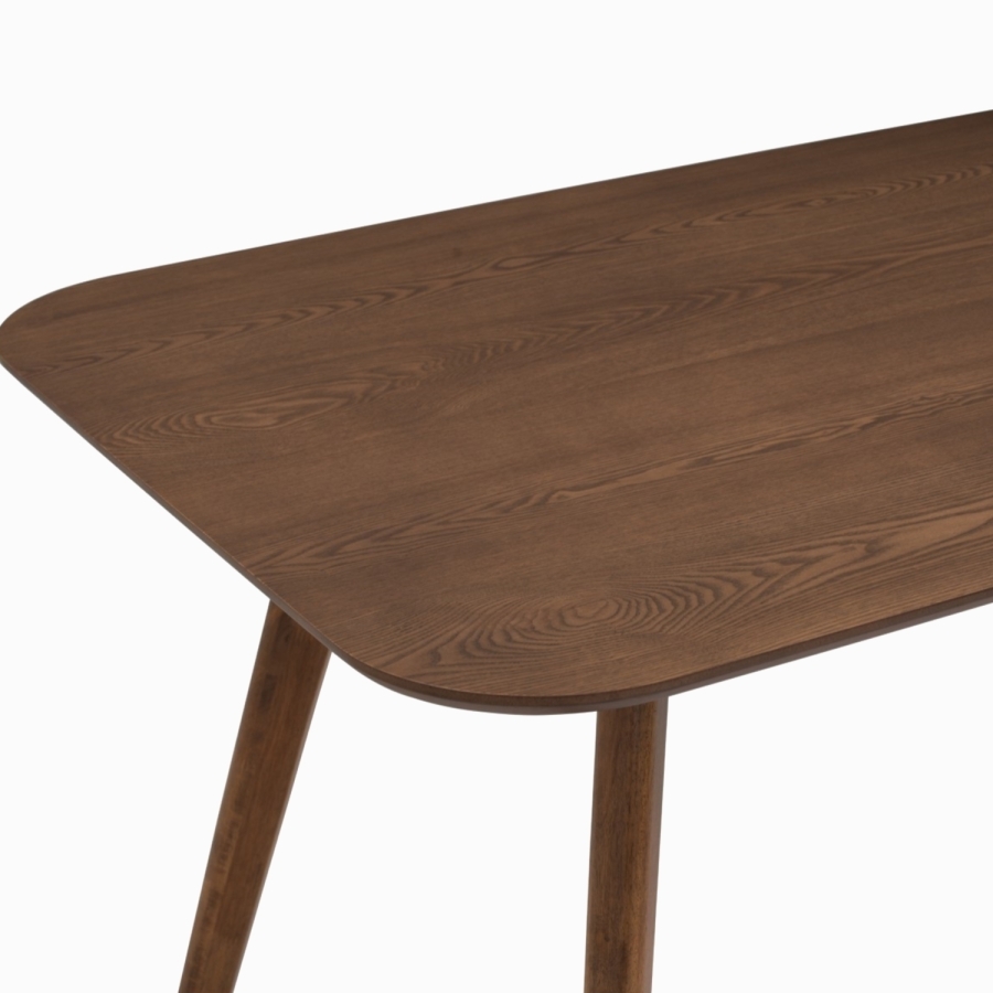 Изготовлен из МДФ с шпоновой отделкой ясеня в натуральном и какао-цветах, что придаёт столу элегантный вид и прочность.