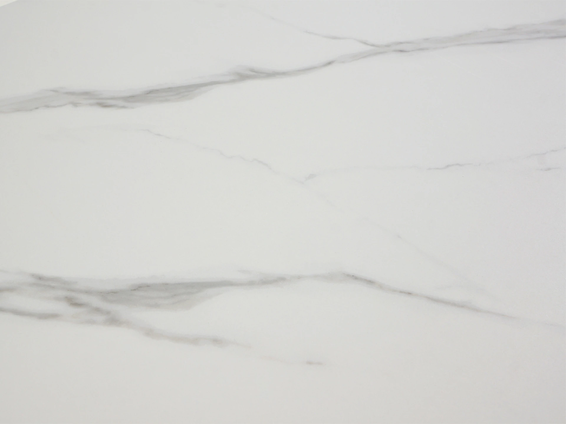 Столешница выполнена из белой матовой керамики на основе из МДФ с отделкой натуральным шпоном дуба. Такая комбинация материалов не только подчёркивает утончённый внешний вид, но и обеспечивает высокую устойчивость к механическим повреждениям, термическому воздействию и загрязнениям. Материал основания - МДФ облицованный натуральным шпоном дуба.