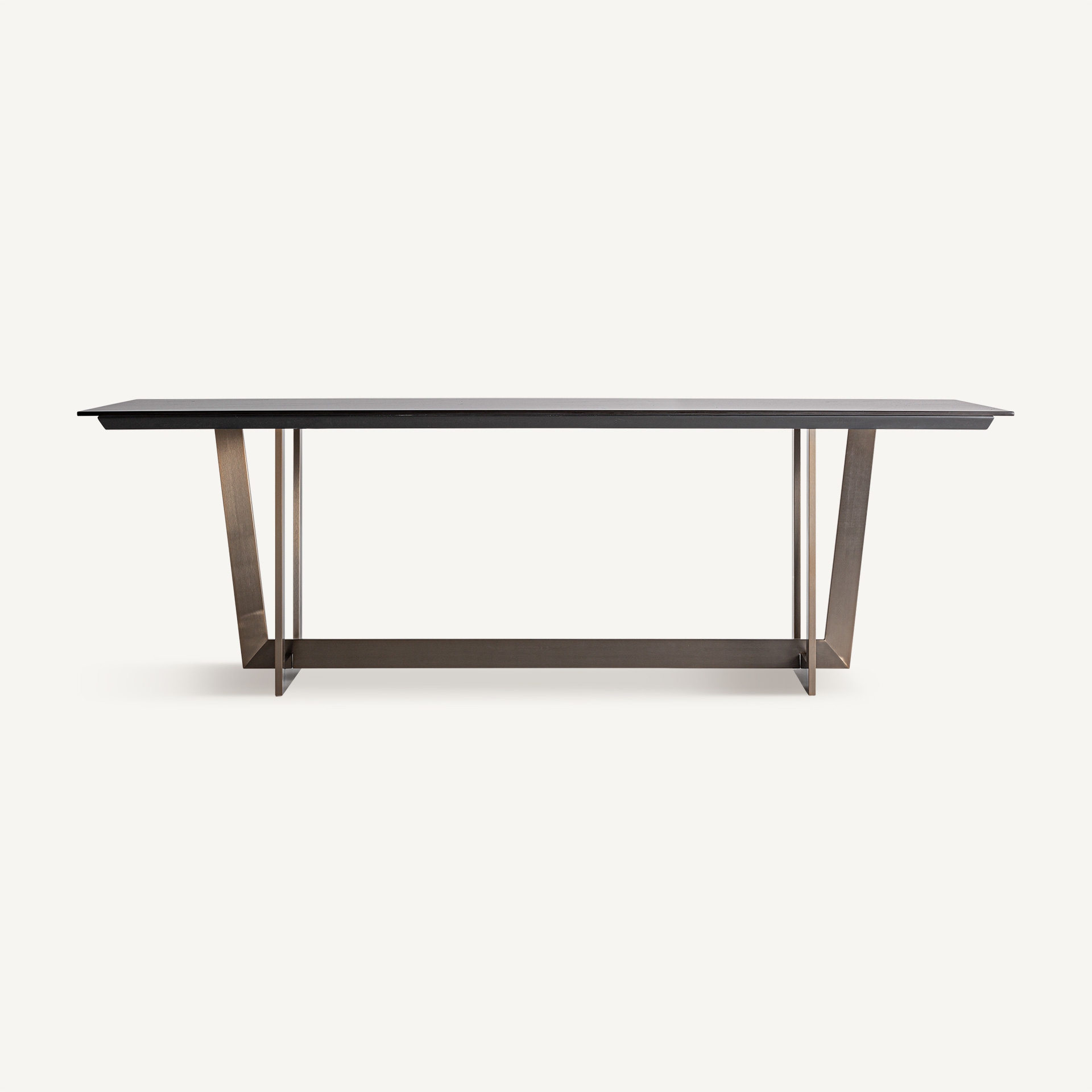 Обеденный стол Tremp, черный/золотой, стиль арт-деко. Изготовлен из камня в сочетании с нержавеющей сталью. Съемное изделие.