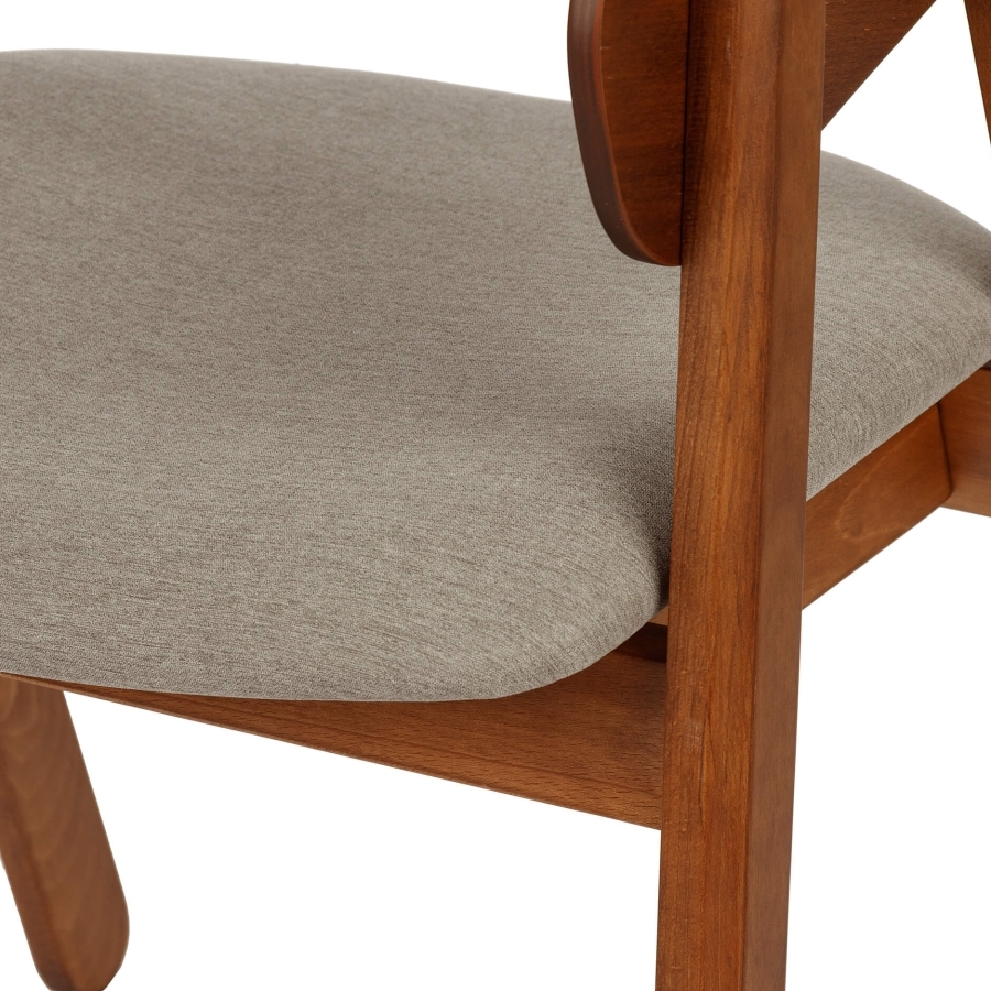 Изготовлен из прочного дерева, что обеспечивает надежность и долговечность конструкции. Коричневые ножки из натурального дерева придают стулу устойчивость и стильный вид, подчеркивая его современный дизайн.