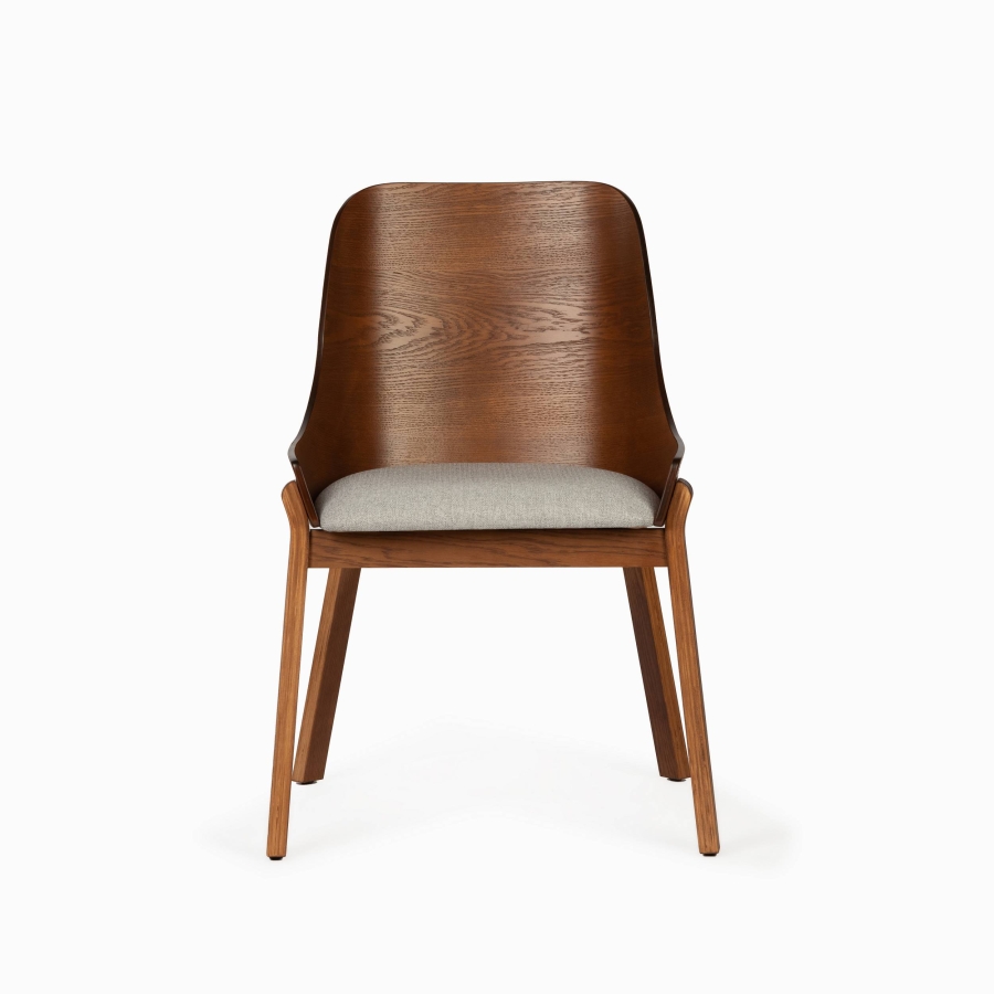 Стул обит мягким полиэстером в нежном сером цвете с кодом материала Madrid Latte, что делает его универсальным и легко сочетаемым с различными стилями интерьера.
