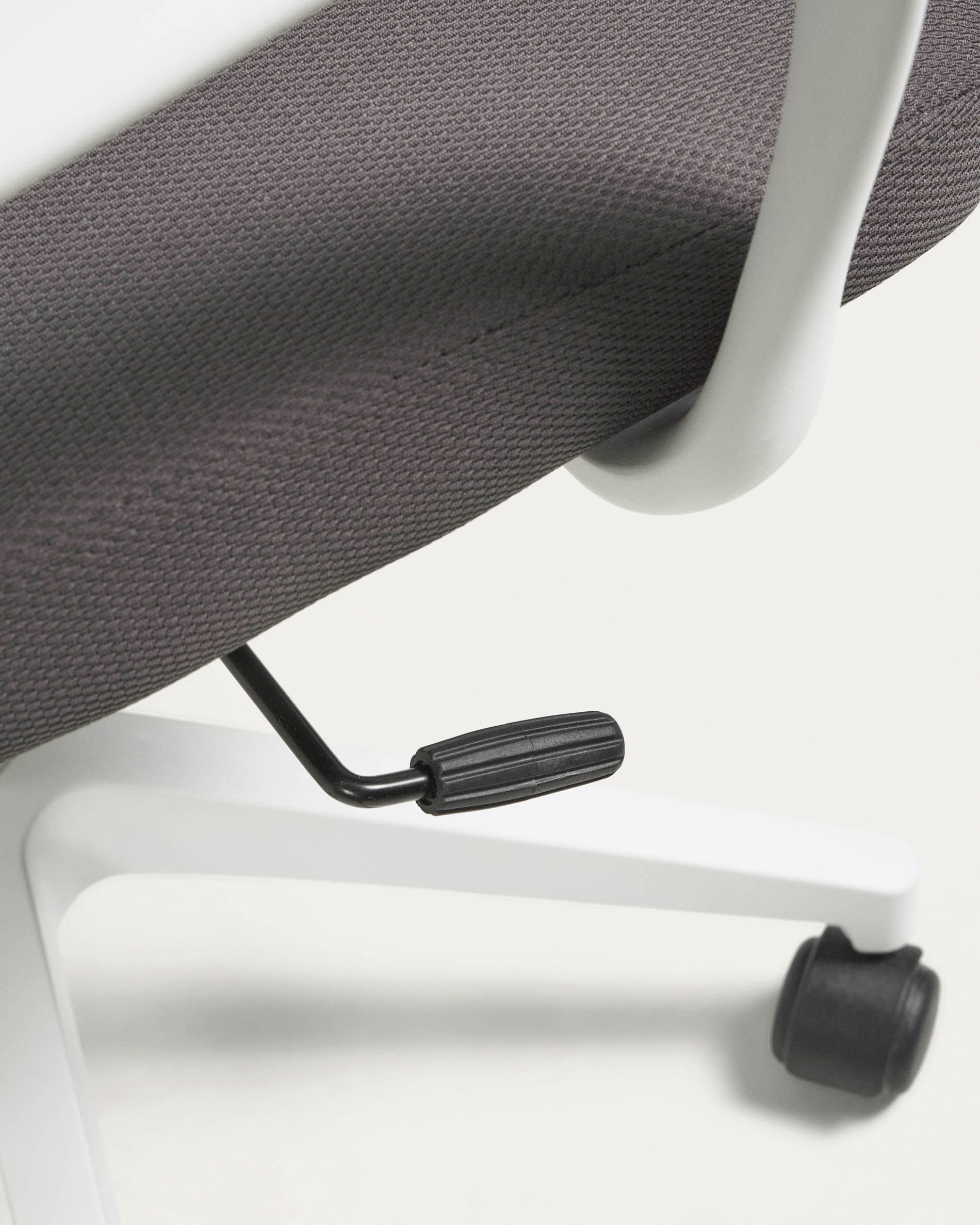 Обивка на сиденье сделана из плотного текстиля черного или серого цвета (для модели с белой основой).